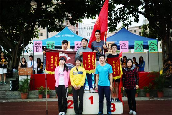经过激烈的比赛,由13联队和14企管1并列荣获第一,15国物2和14市营1分别荣获第二,三名。道德风尚奖则由15人力2班和 15国物1班获得。运动健儿们,绿茵场上是你挥洒青春的舞台,红色的跑道是你书写青春的卷章。