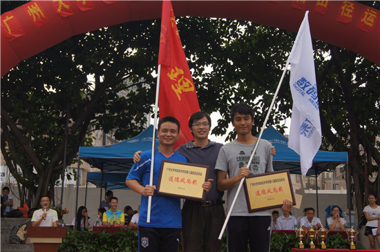 在一段吸引众人眼球的啦啦操过后,党委张高峰副书记宣布广州大学华软软件学院第八届田径运动会经过一天半紧张激烈的比赛,圆满完成各项任务,胜利闭幕,并依次宣布了健身月体育系列活动获奖名单。