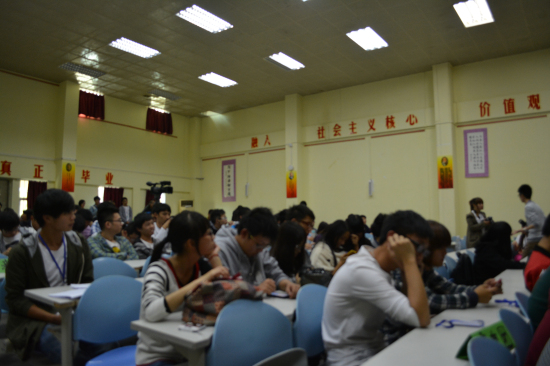 第二组选手何立轩(11级/国贸系/国际经济与贸易)、全华(12级/国贸系/(财务管理)财会3班)、谭淑方(11级国贸系/财务管理(财会1班))、林鹏 (11级/数码系/数字影视制作)