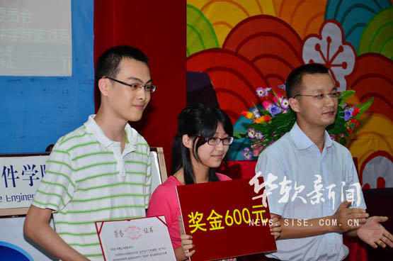 此次共有40多份作品获奖。颁奖典礼上,大赛主办方现场播放各组获得一、二、三等奖的作品,再由专业老师为每组作品逐一进行点评,每组一等奖获奖者领奖后纷纷发表获奖感言。让人心中一片温馨的《小时候》的作者是11级游戏系学生甘蔼欣,她说:“我从小学就开始练习画漫画,从未间断过。大家只要努力坚持每天练习,相信一定也能取得我这样的成绩的。”Flash组一等奖作品是《放开那个卡特琳娜》据说该游戏是根据3D网络游戏英雄联盟为素材制作的,制作者徐奕成说:“在创作过程中,我觉得我做的很重要的一点就是常向老师求助,因为老师真的能给你很大的帮助。”同样来自游戏系的李劲声同学则更加霸气,他说:“我们要多玩游戏去寻找灵感,但是我们自己绝不能沉迷于游戏,而是要制作出游戏来‘沉迷’玩家!”