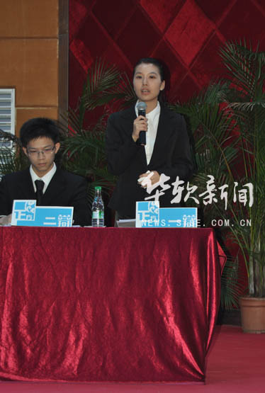 双方辩手唇枪舌战,你来我往,却又不失风度。一开场,正方一辩就义正其辞地抛出“政府不仅有责任保持见义勇为者的权益,更重要的是通过奖励对他们见义勇为的行为表示认可”这一观点,并强调道:“许多昔日救人的英雄,今日无钱看病。生命垂危,‘流血又流泪’的社会悲剧不断重演,因此对见义勇为者的保障必不可少,立法保护‘见义勇为’行为可以将其所受到的损失降到最低。”反方一辩也不失雄风,她阐述道,“见义勇为”是道德文化范畴,立法奖励“见义勇为”令道德价值化。除此之外,她还一针见血地反问正方辩手:“要是立法奖励‘见义勇为’,那么请问美德多少钱一份?”