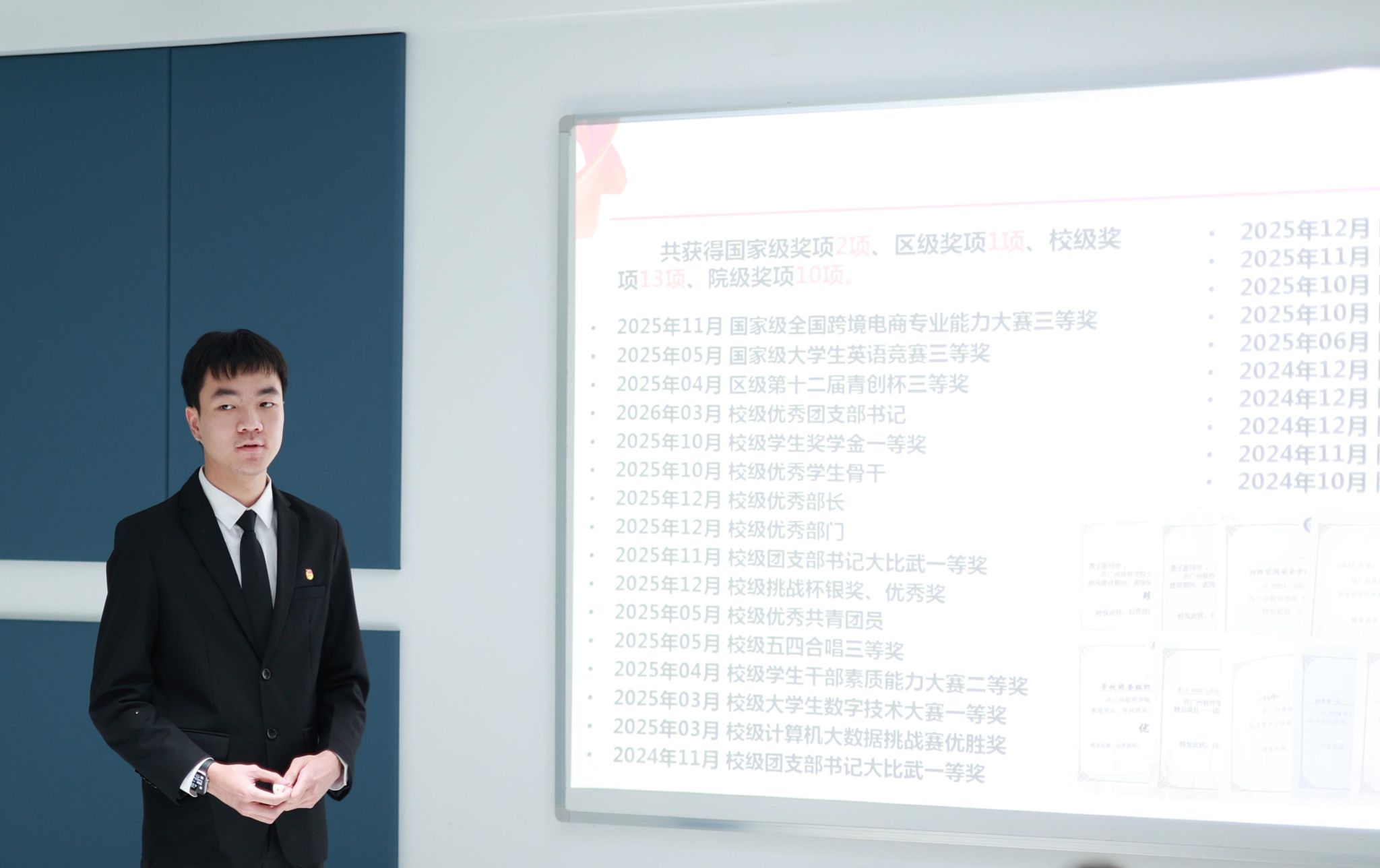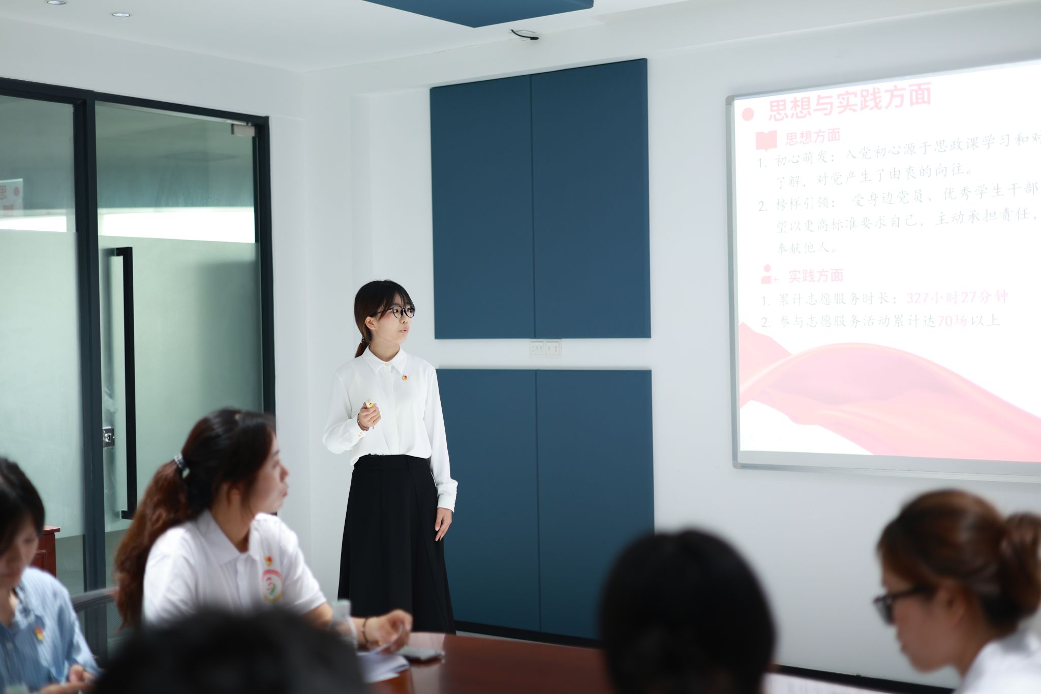 最后,青马党支部余润珠书记作总结讲话:一是充分肯定此次答辩的成效,此次答辩不仅是对拟发展对象的全面检验,更是一次具有生动性的党性教育与思想交流活动。二是严格遵循组织程序,以客观公正的态度看待答辩结果,党支部将对拟发展对象展开全面、客观、公正的评价。三是持续强化党性锻炼,在理论学习、发挥模范作用以及接受长期考验的过程中,以实际行动争取早日加入中国共产党。