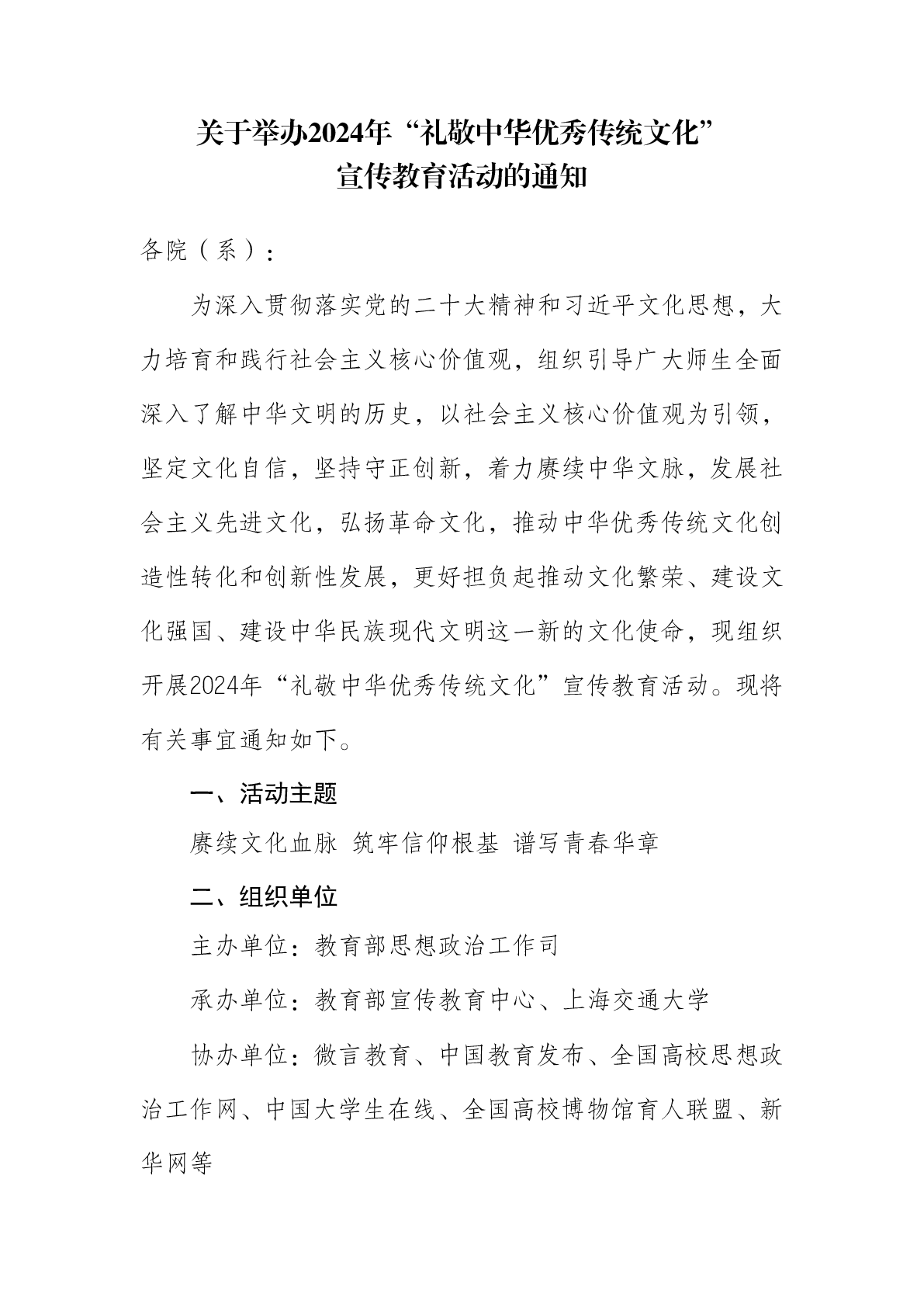 关于举办2024年“礼敬中华优秀传统文化”宣传教育活动的通知