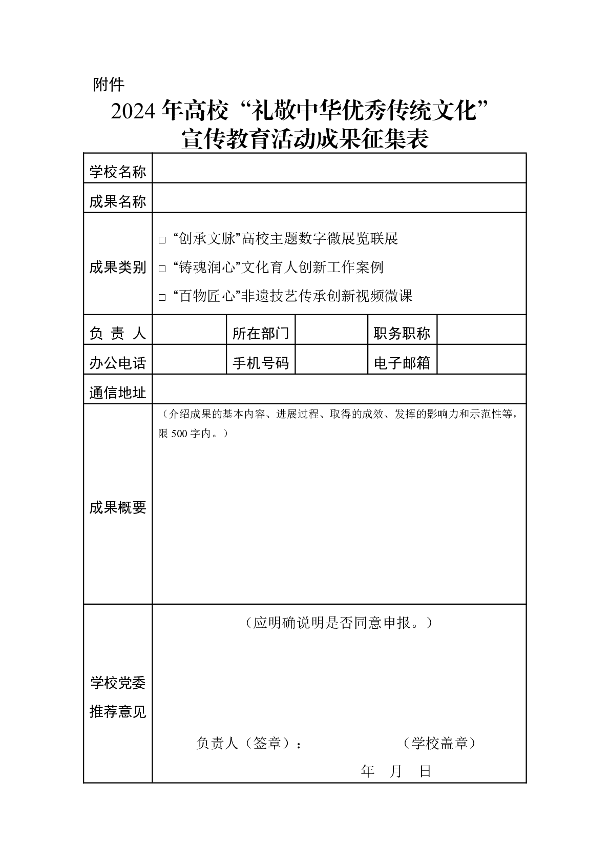 2024年高校“礼敬中华优秀传统文化”宣传教育活动成果征集表.doc