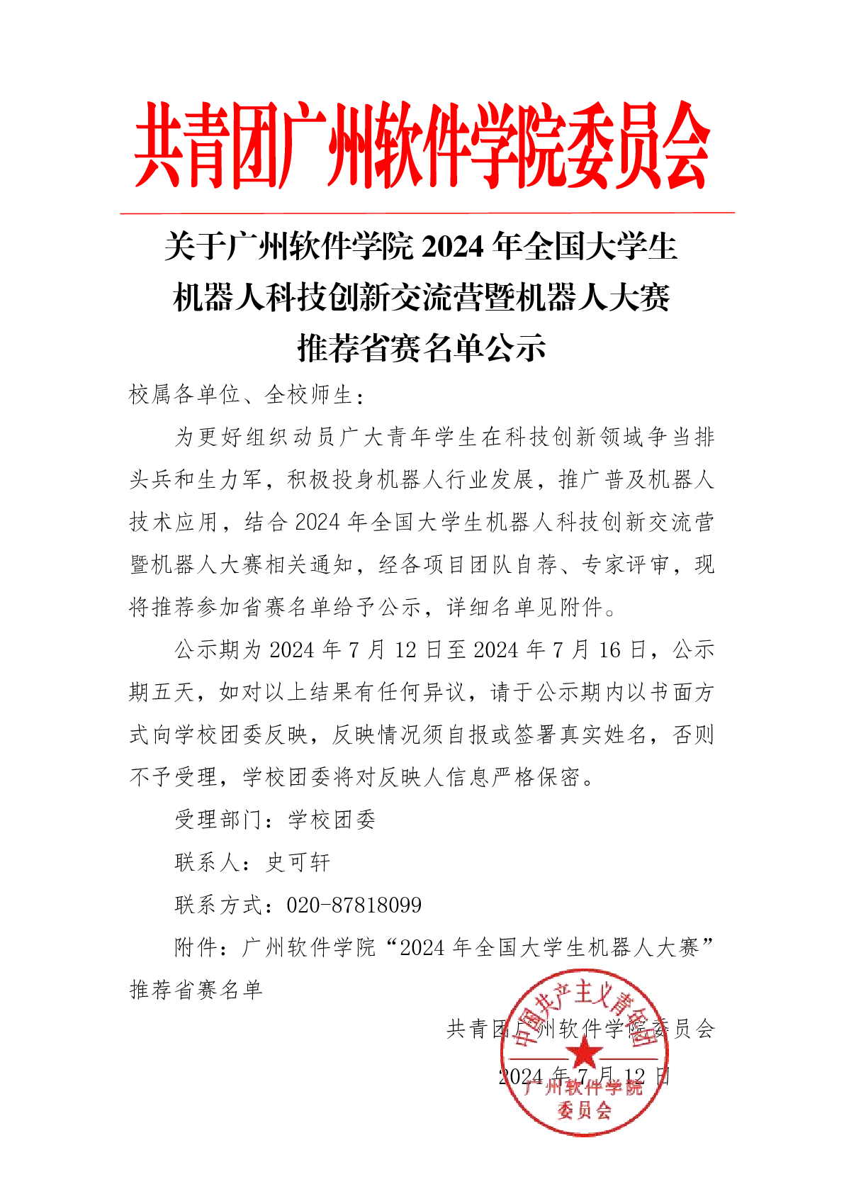 关于2024年全国大学生机器人科技创新交流营暨机器人大赛推荐省赛名单公示