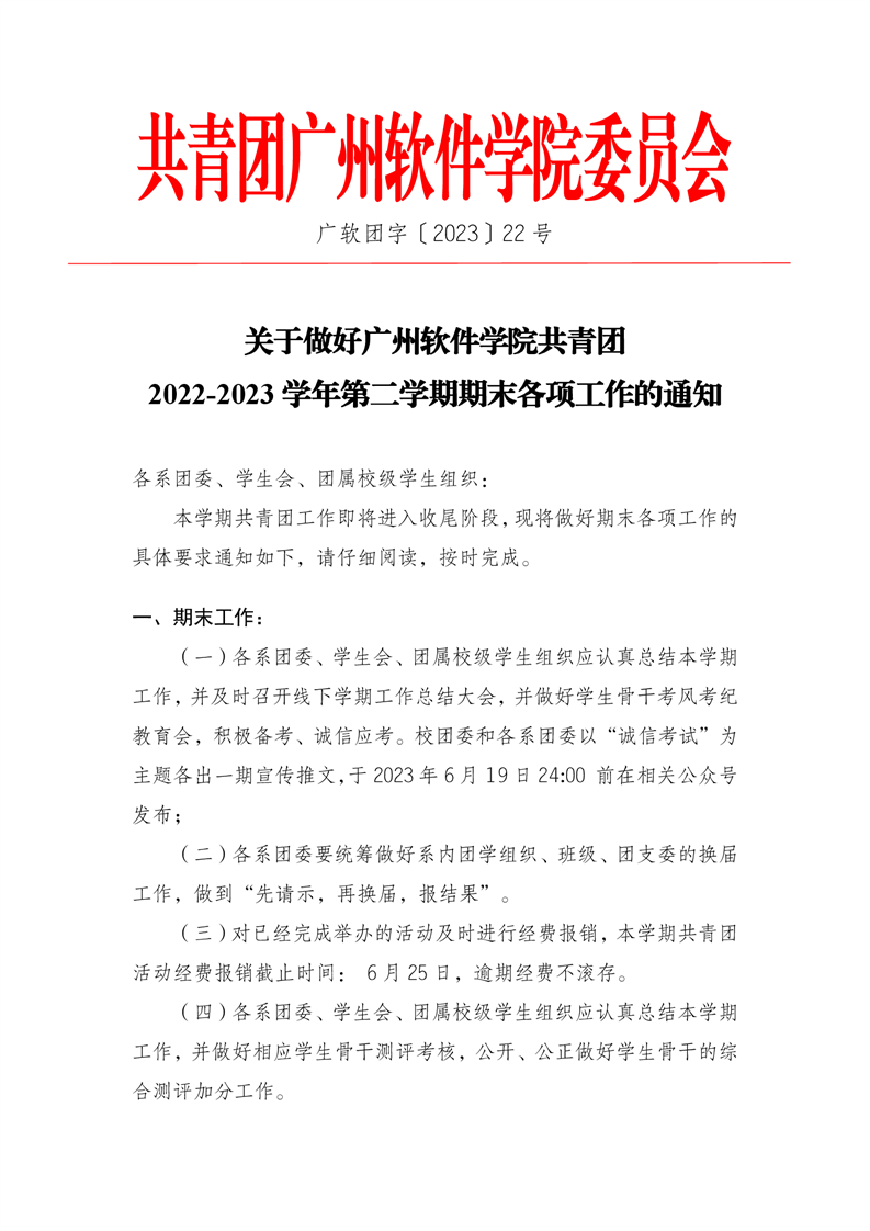 广软团字【2023】22号关于做好共青团2022-2023年度第二学期期末各项工作的通知