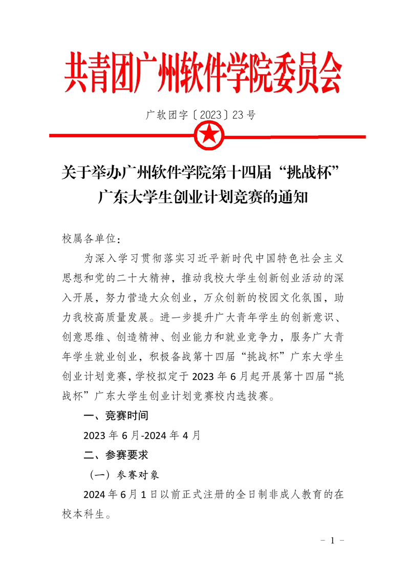关于举办广州软件学院第十四届“挑战杯” 广东大学生创业计划竞赛的通知