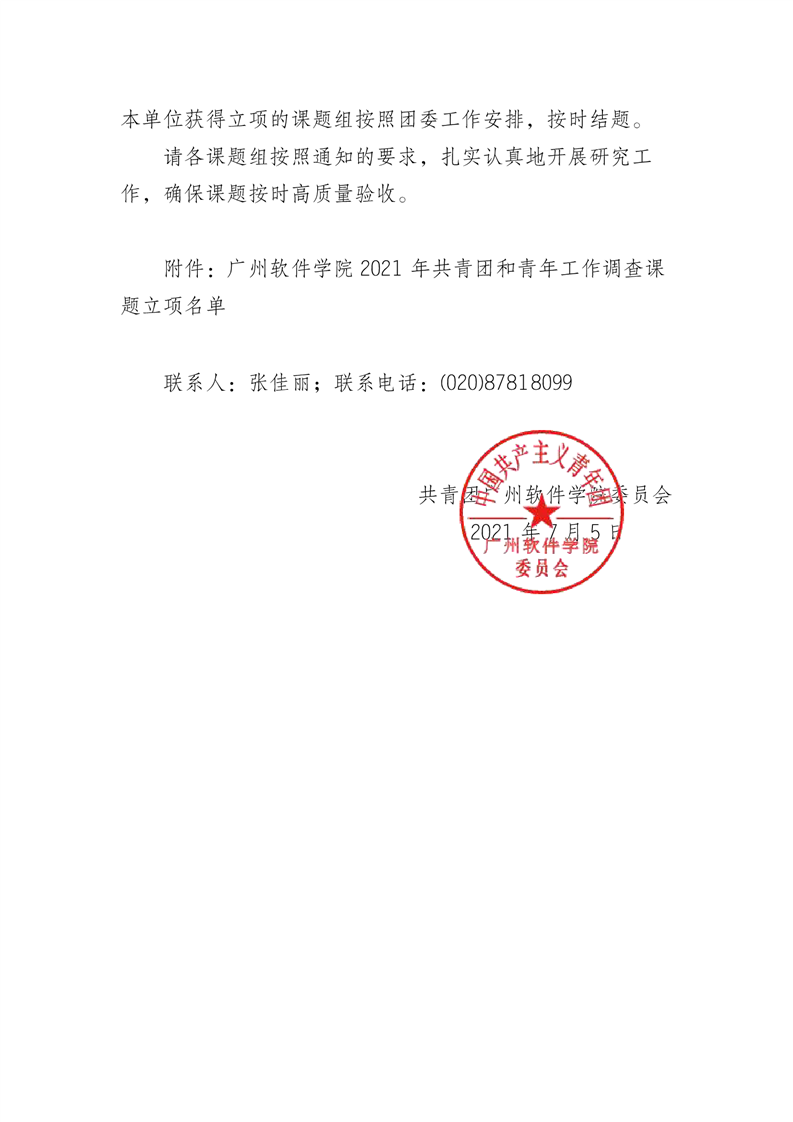 关于公布广州软件学院2021年共青团和青年工作调查课题立项结果的通知