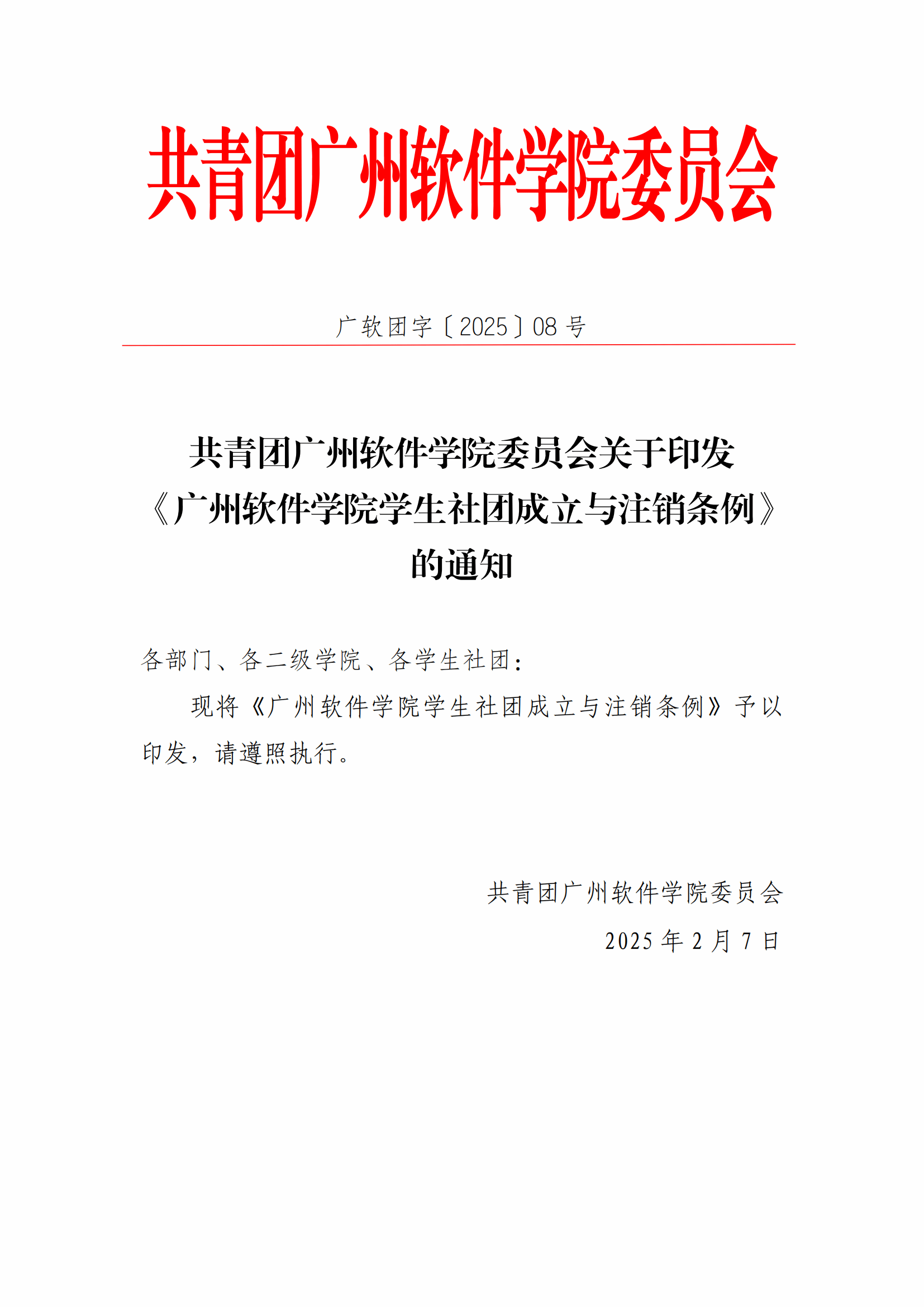 关于印发《广州软件学院学生社团成立与注销条例》的通知
