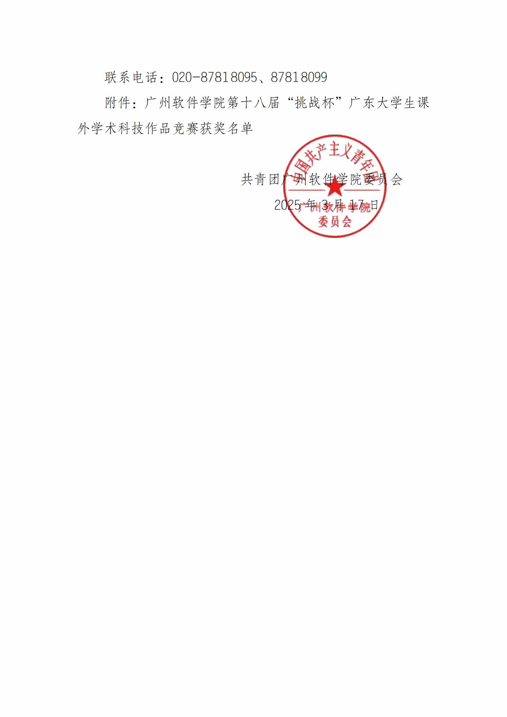 关于公布广州软件学院第十八届“挑战杯”广东大学生课外学术科技作品竞赛获奖名单的通知