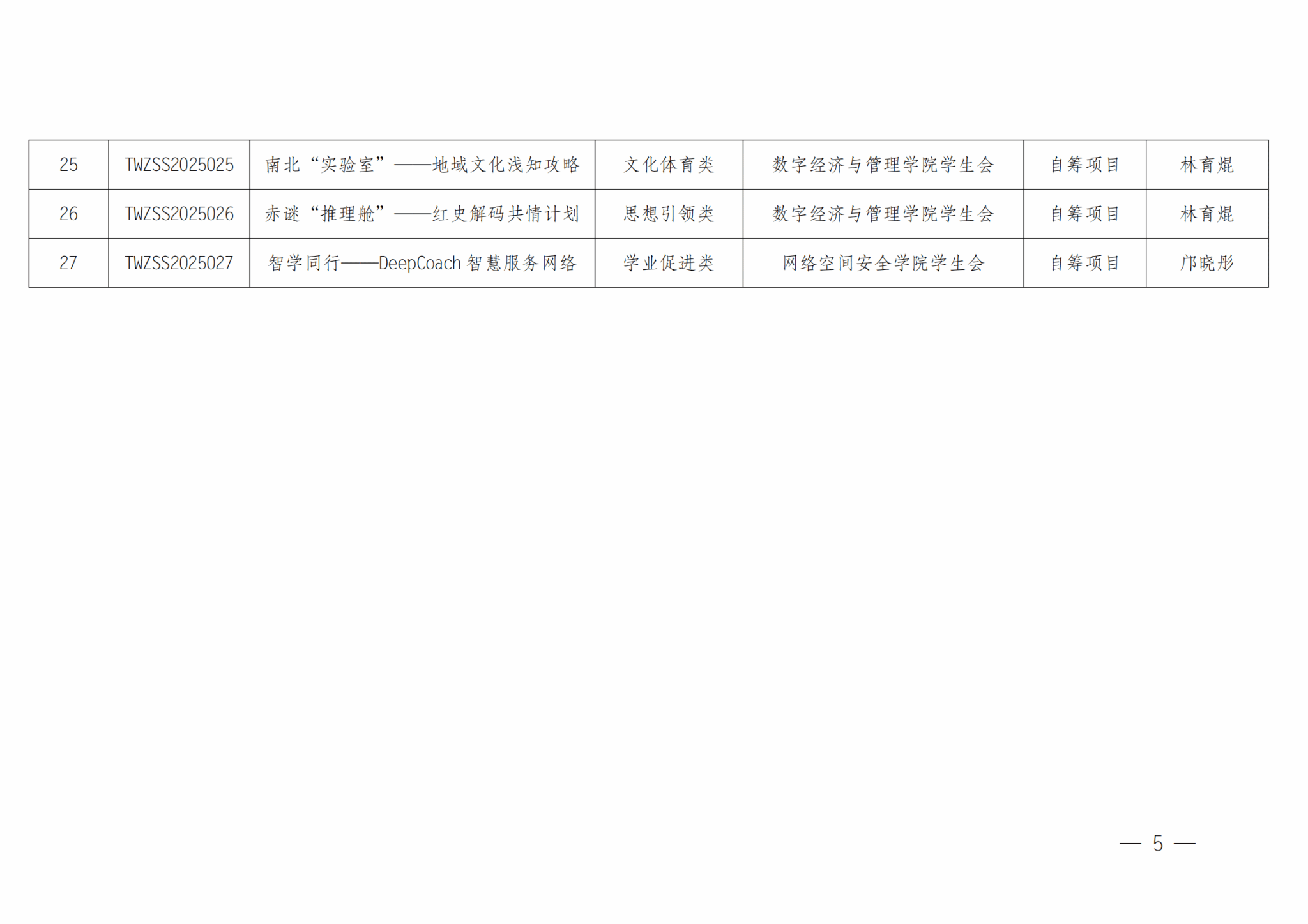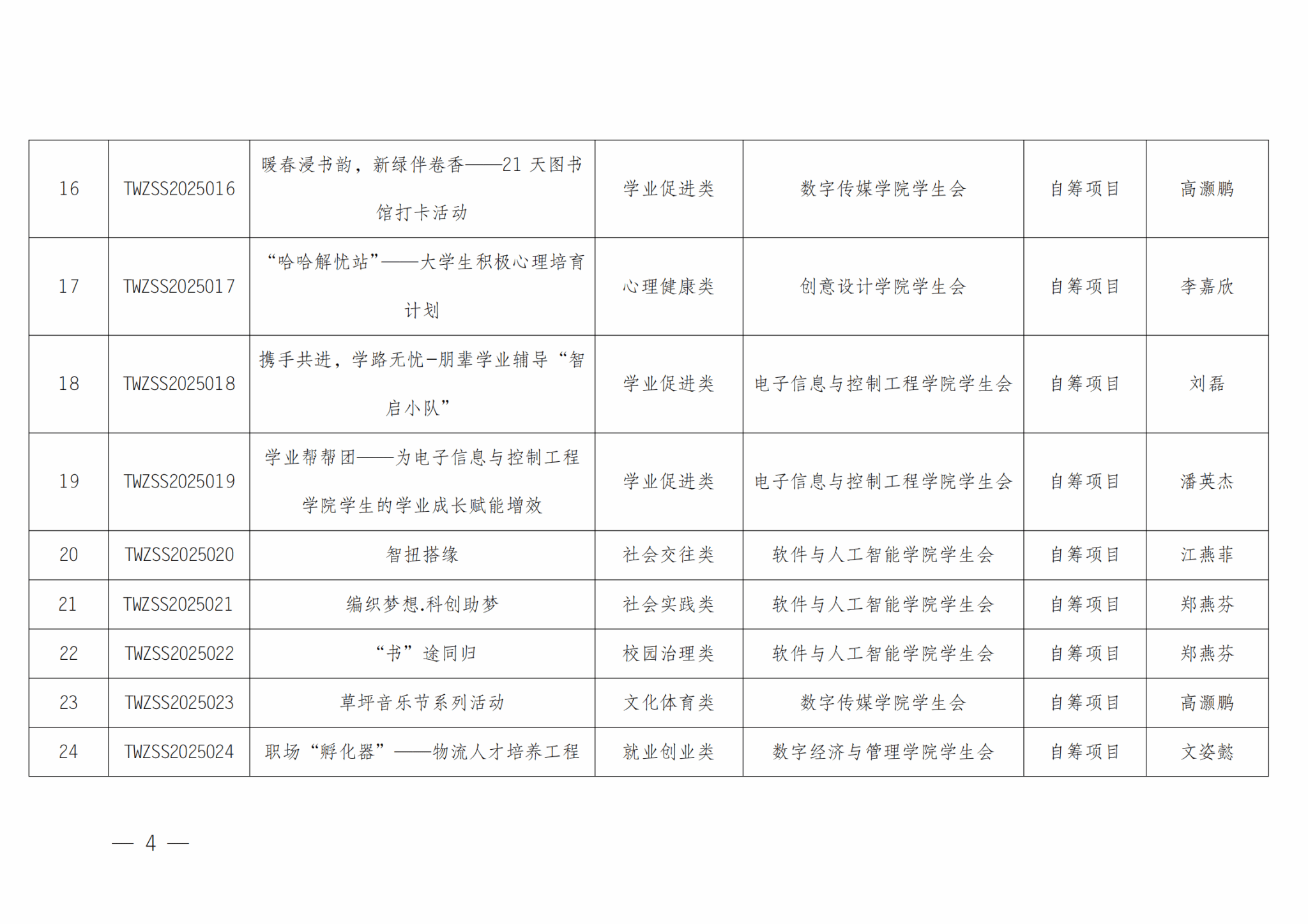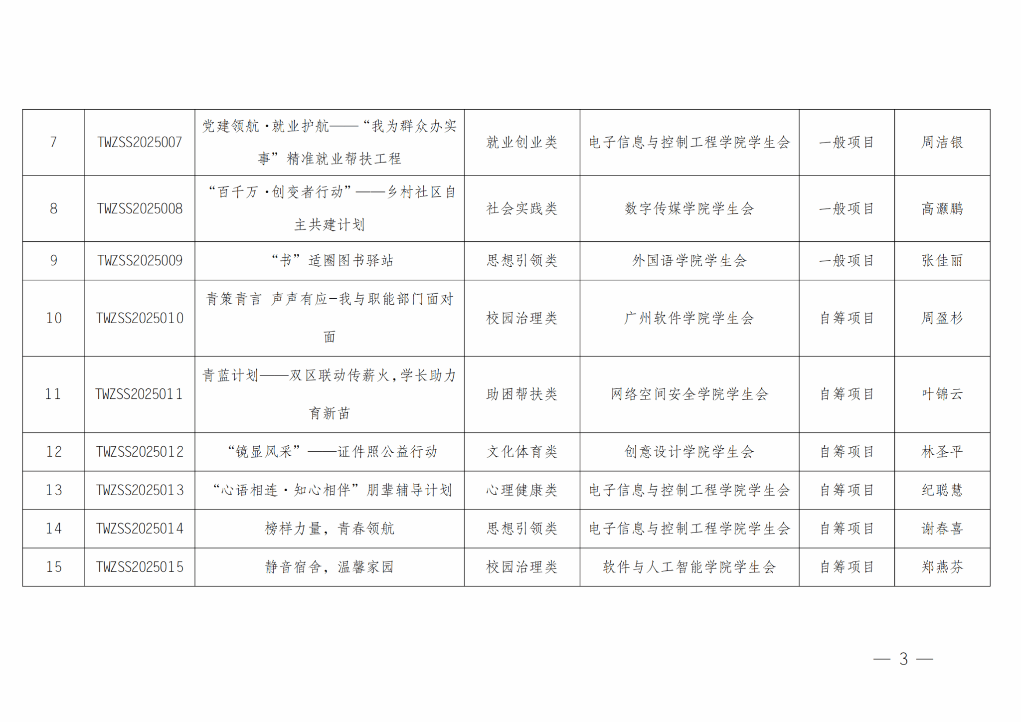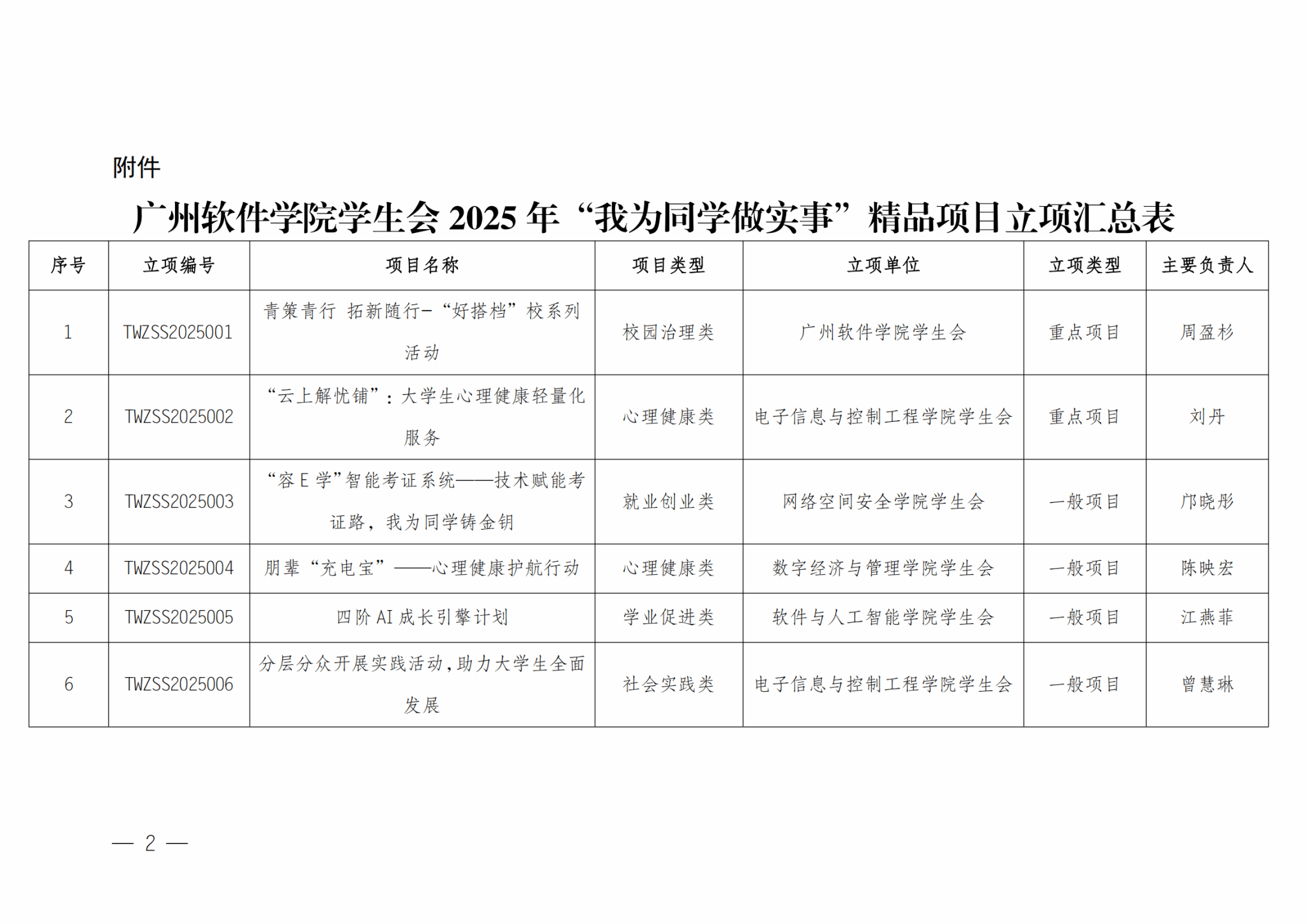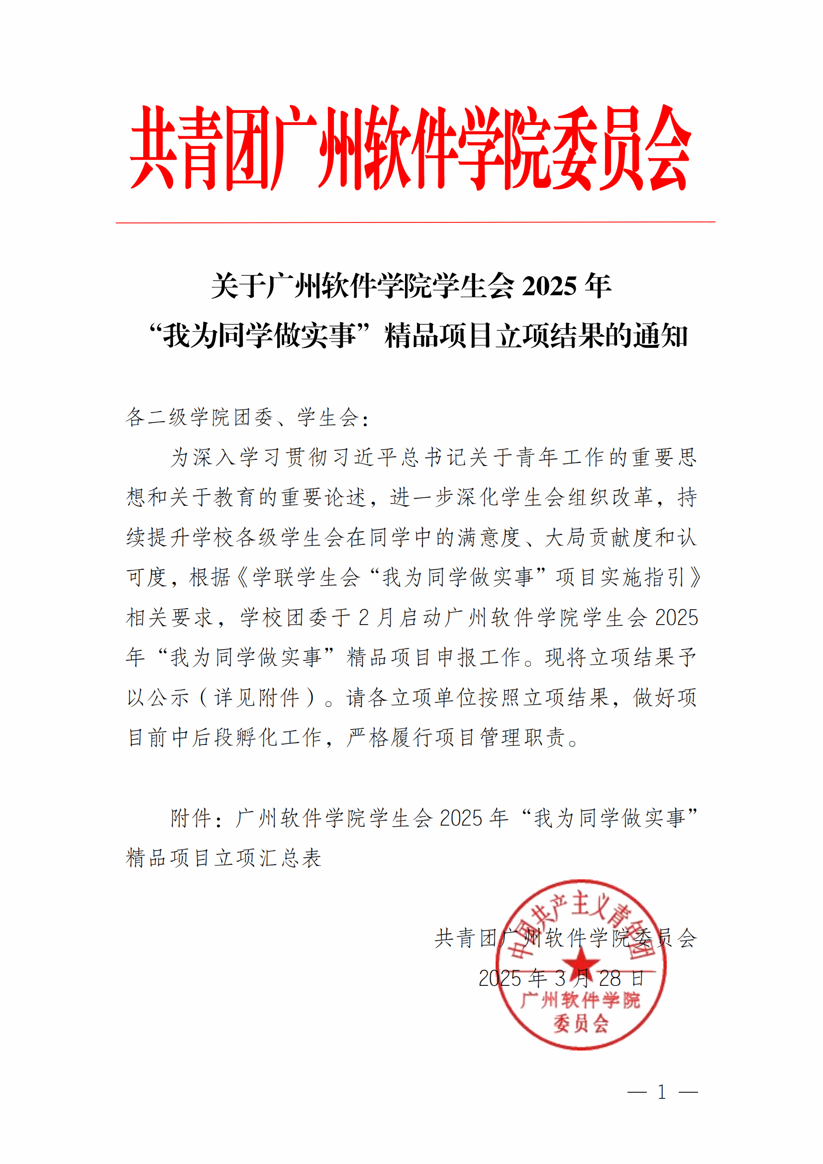 关于广州软件学院学生会2025年“我为同学做实事”精品项目立项结果的通知
