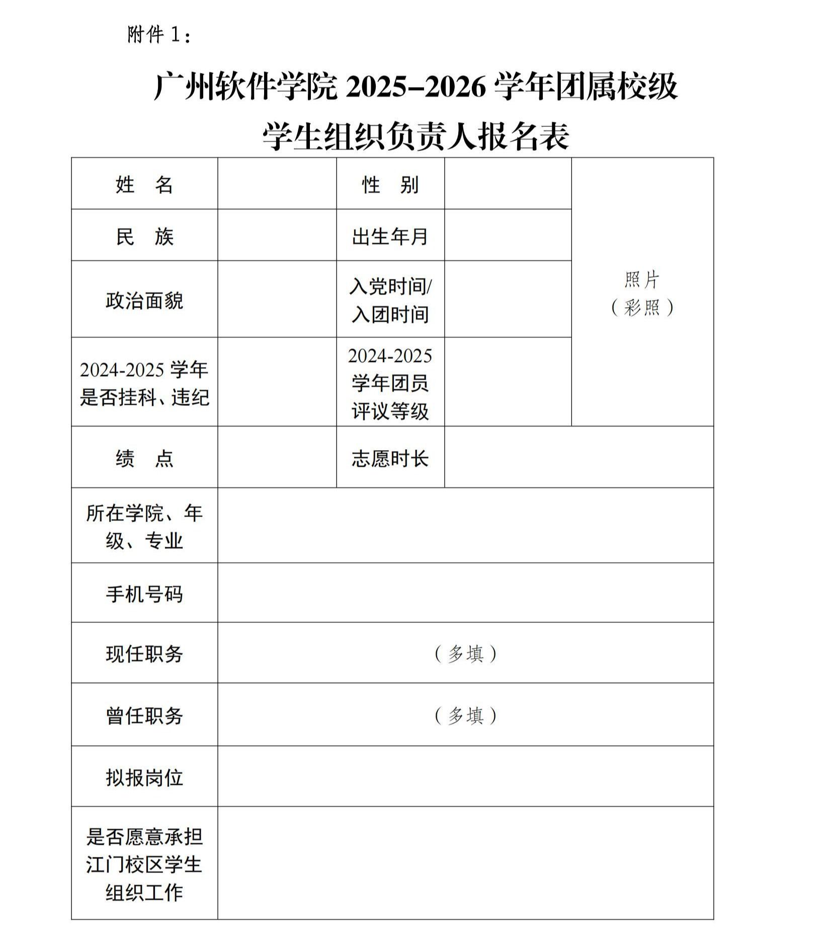 广州软件学院2025-2026学年团属校级学生组织负责人报名表.doc