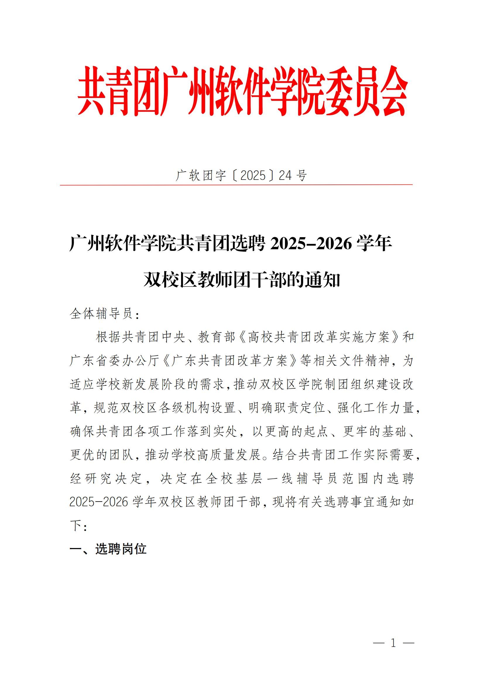 广州软件学院共青团选聘2025-2026学年双校区教师团干部的通知