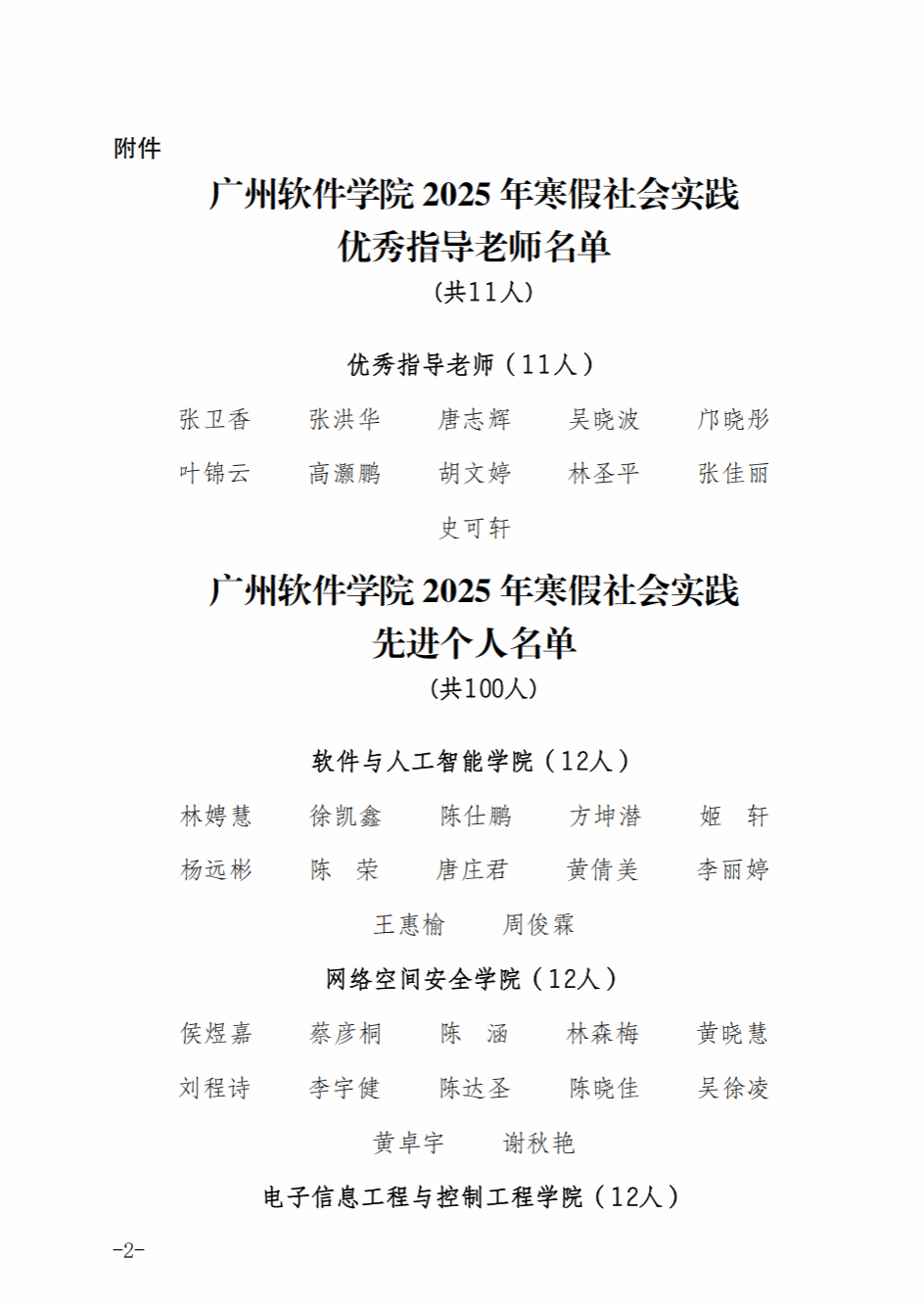 关于表彰广州软件学院 2025 年寒假社会实践优秀指导老师及先进个人的公示