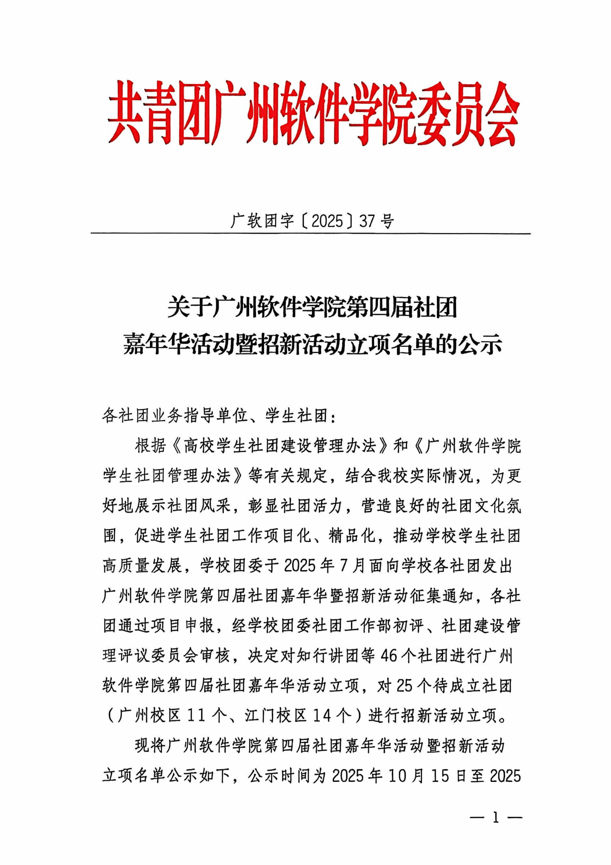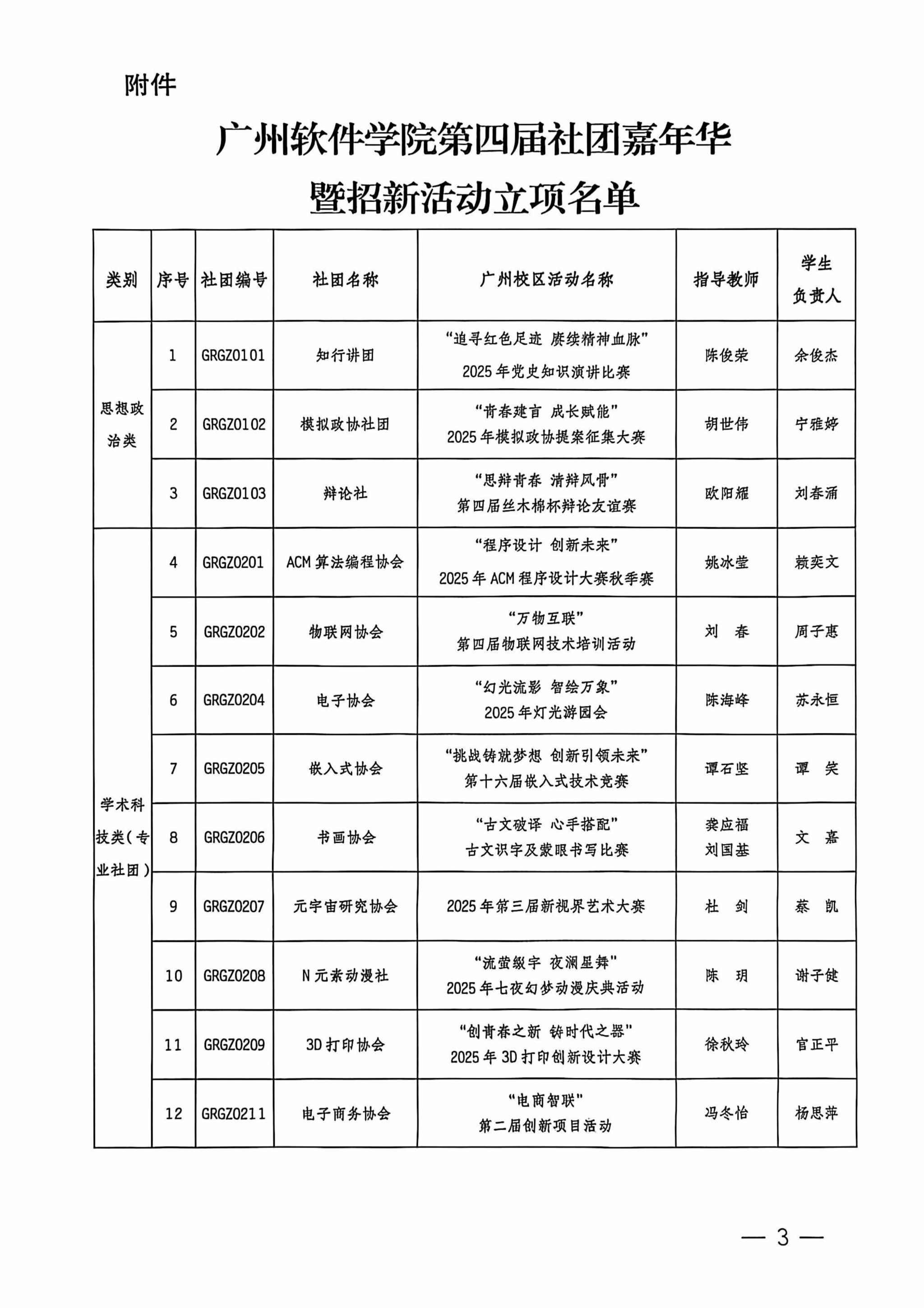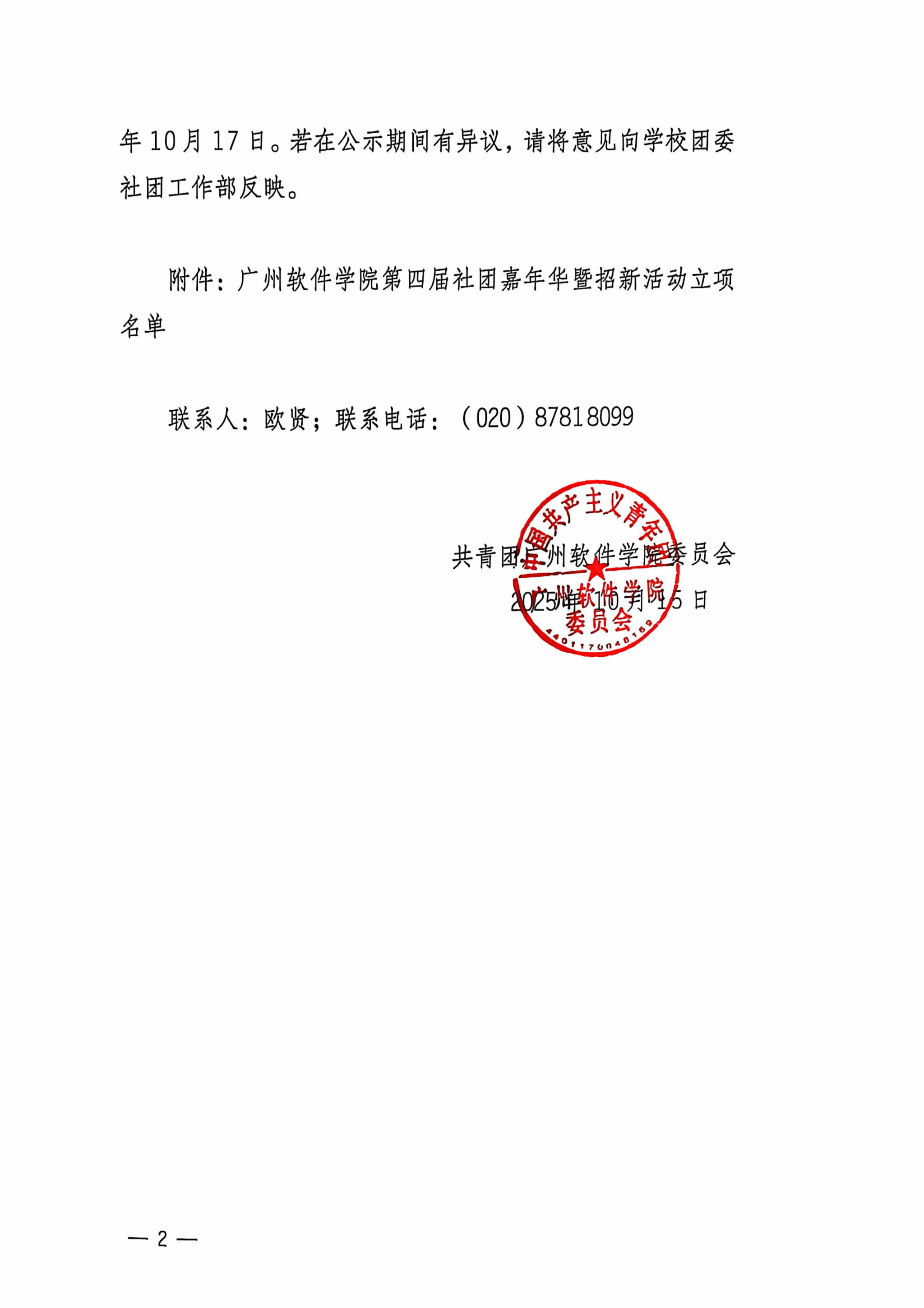 关于广州软件学院第四届社团嘉年华活动暨招新活动立项名单的公示