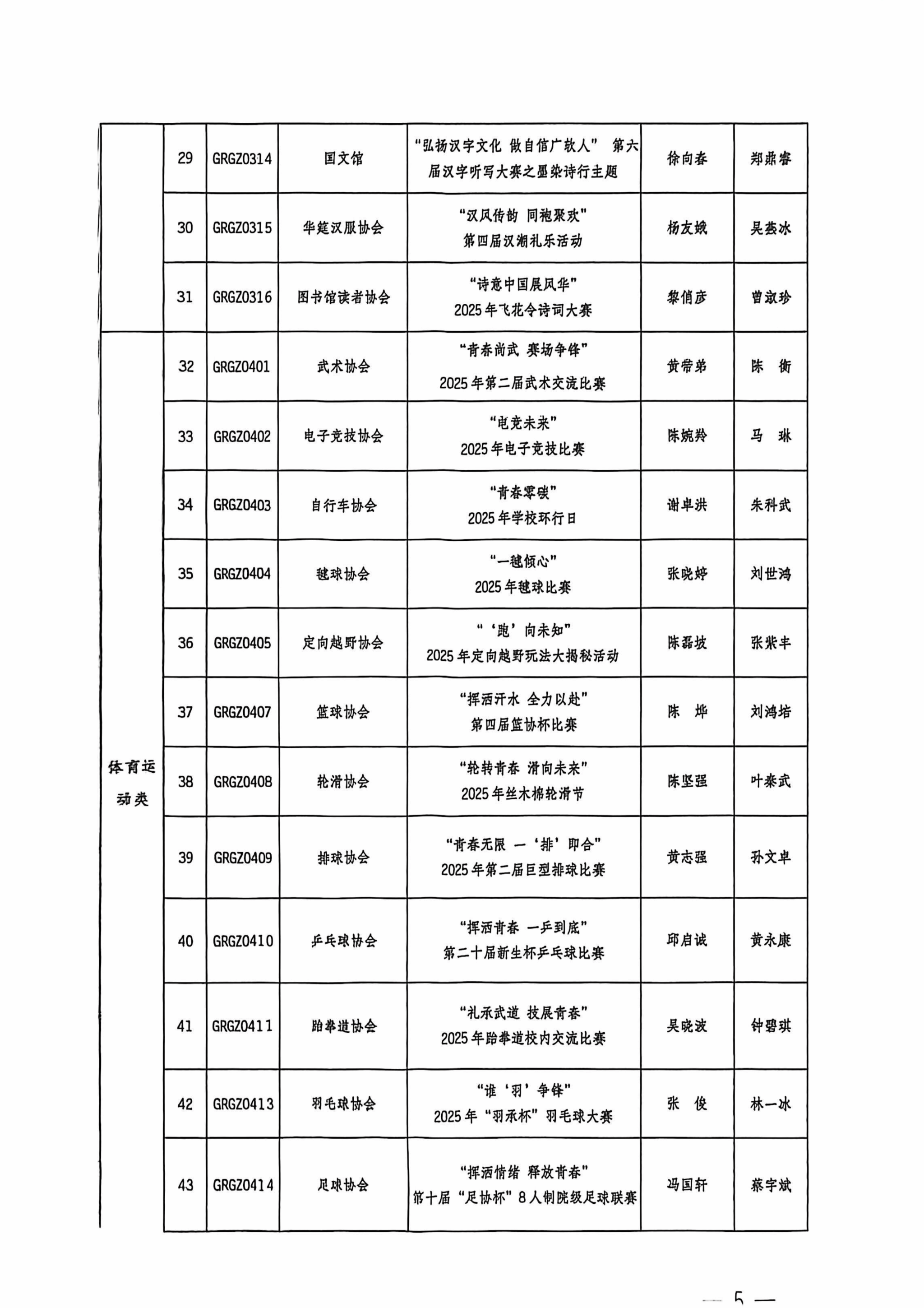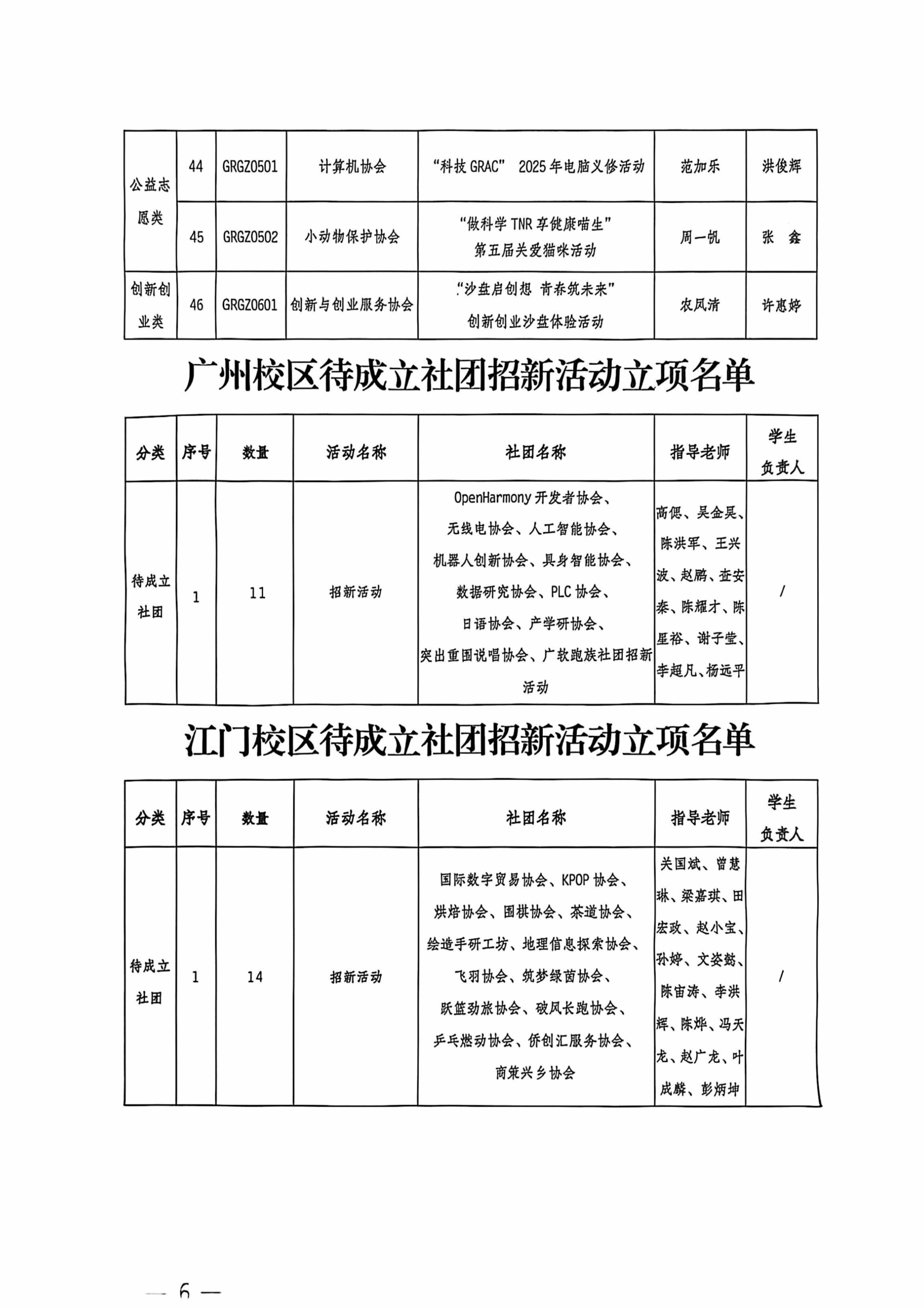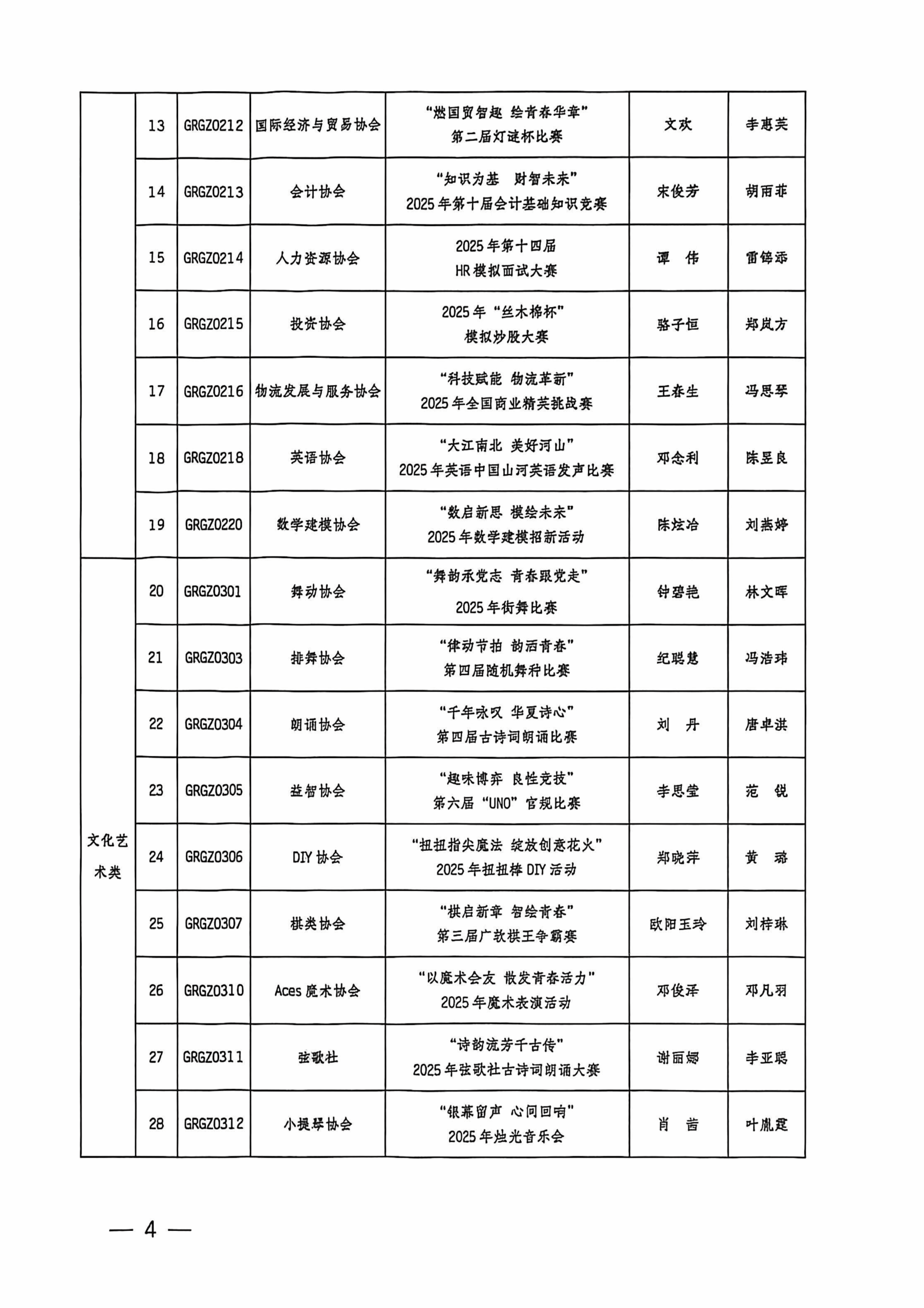关于广州软件学院第四届社团嘉年华活动暨招新活动立项名单的公示