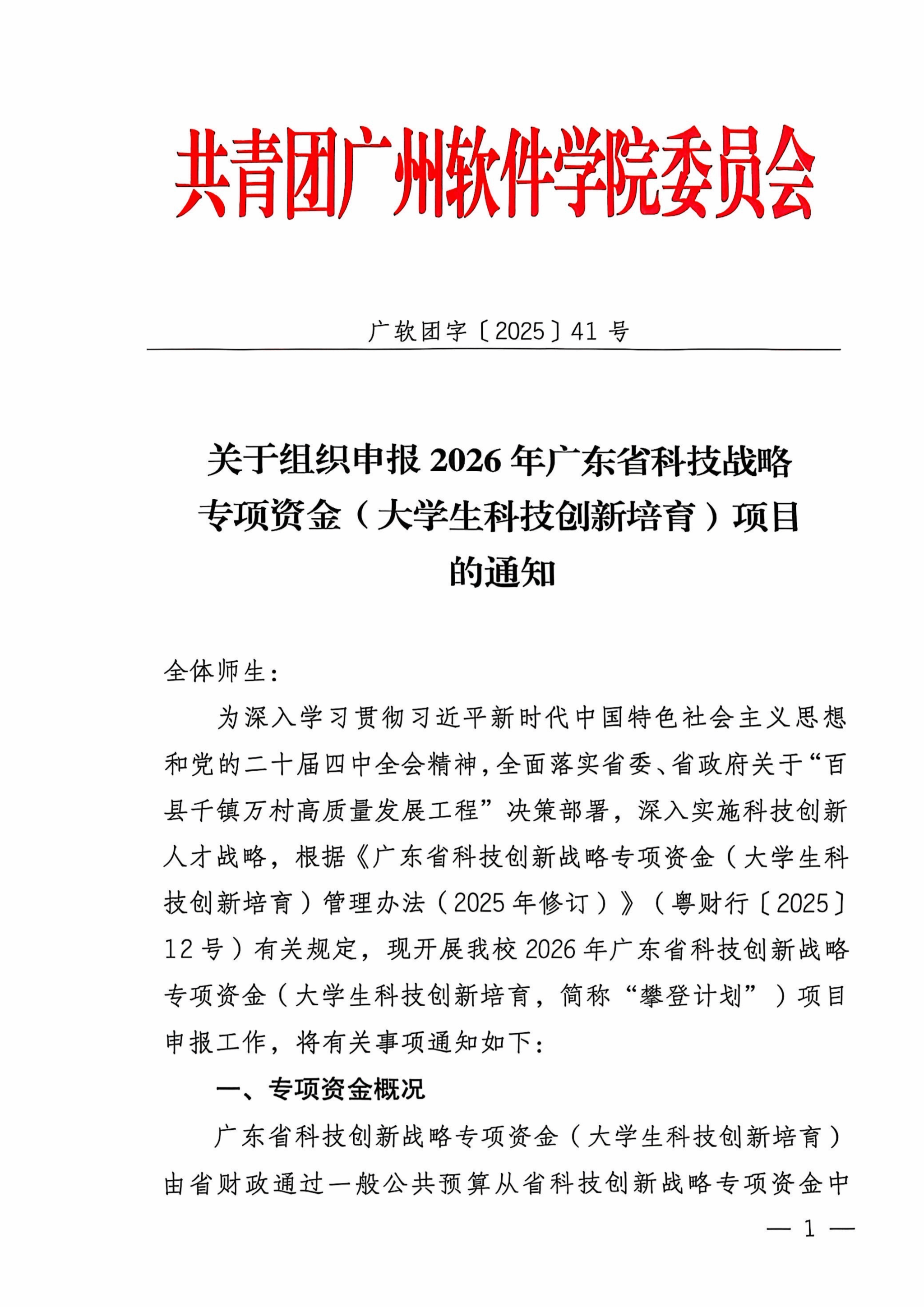 关于组织申报2026年广东省科技战略专项资金(大学生科技创新培育)项目的通知