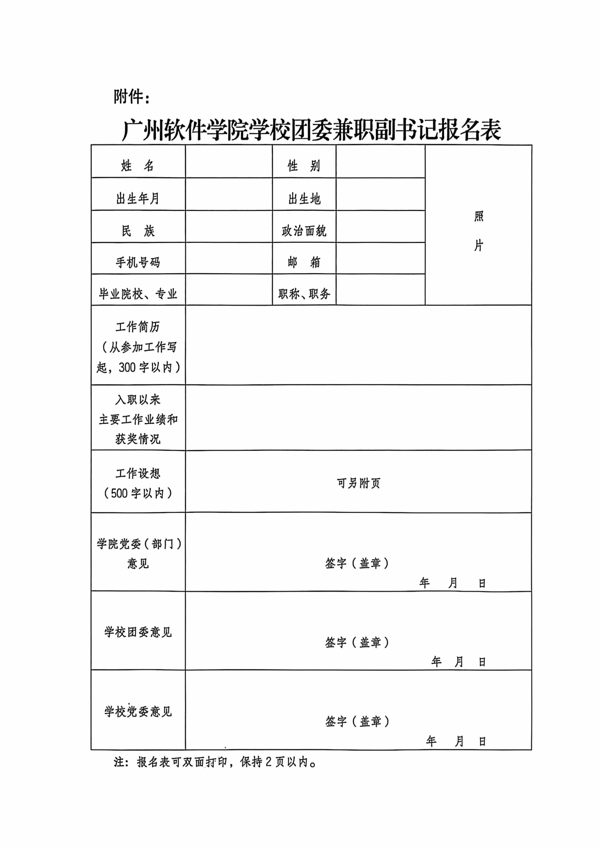 附件:广州软件学院学校团委兼职副书记报名表.docx