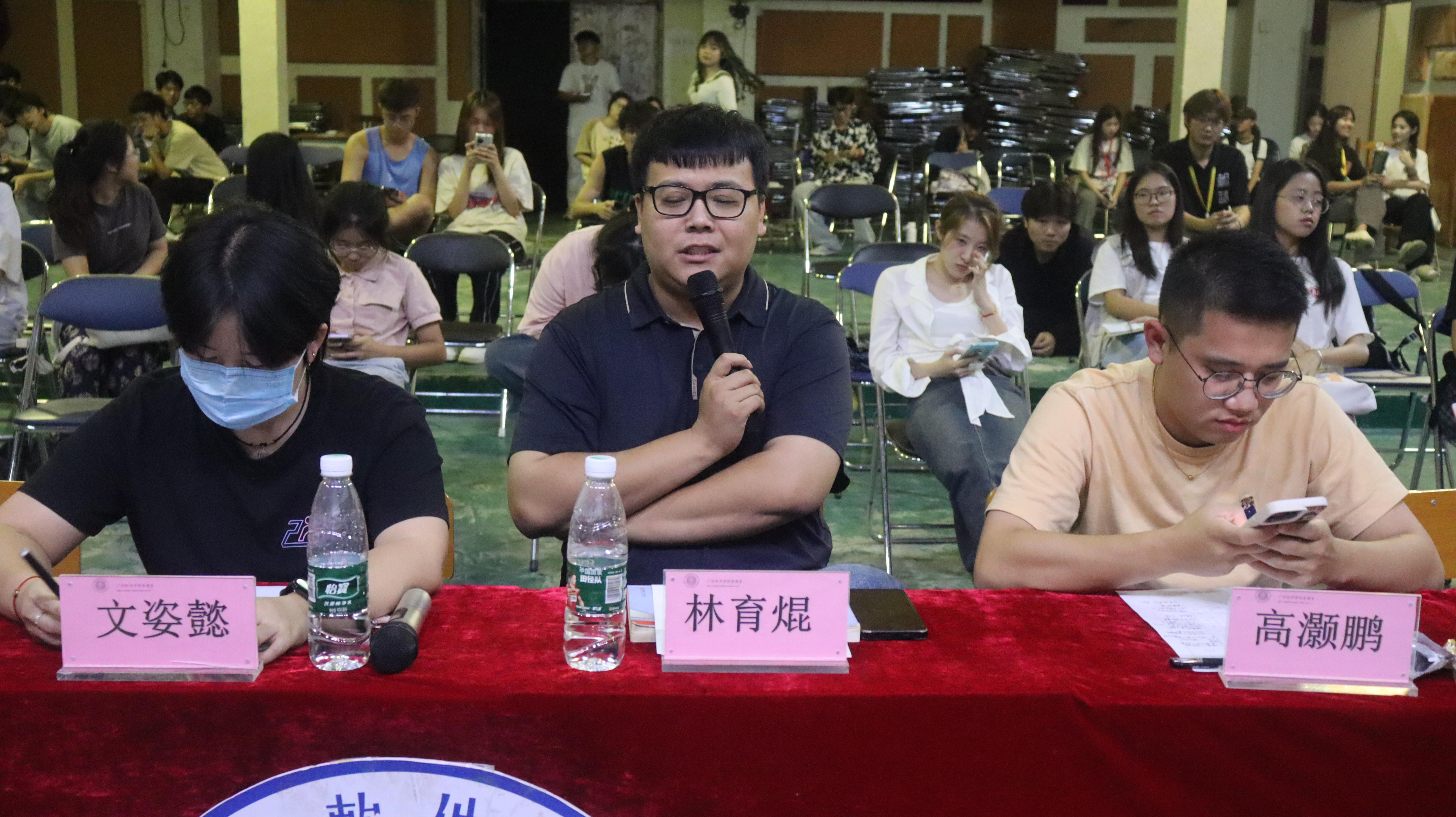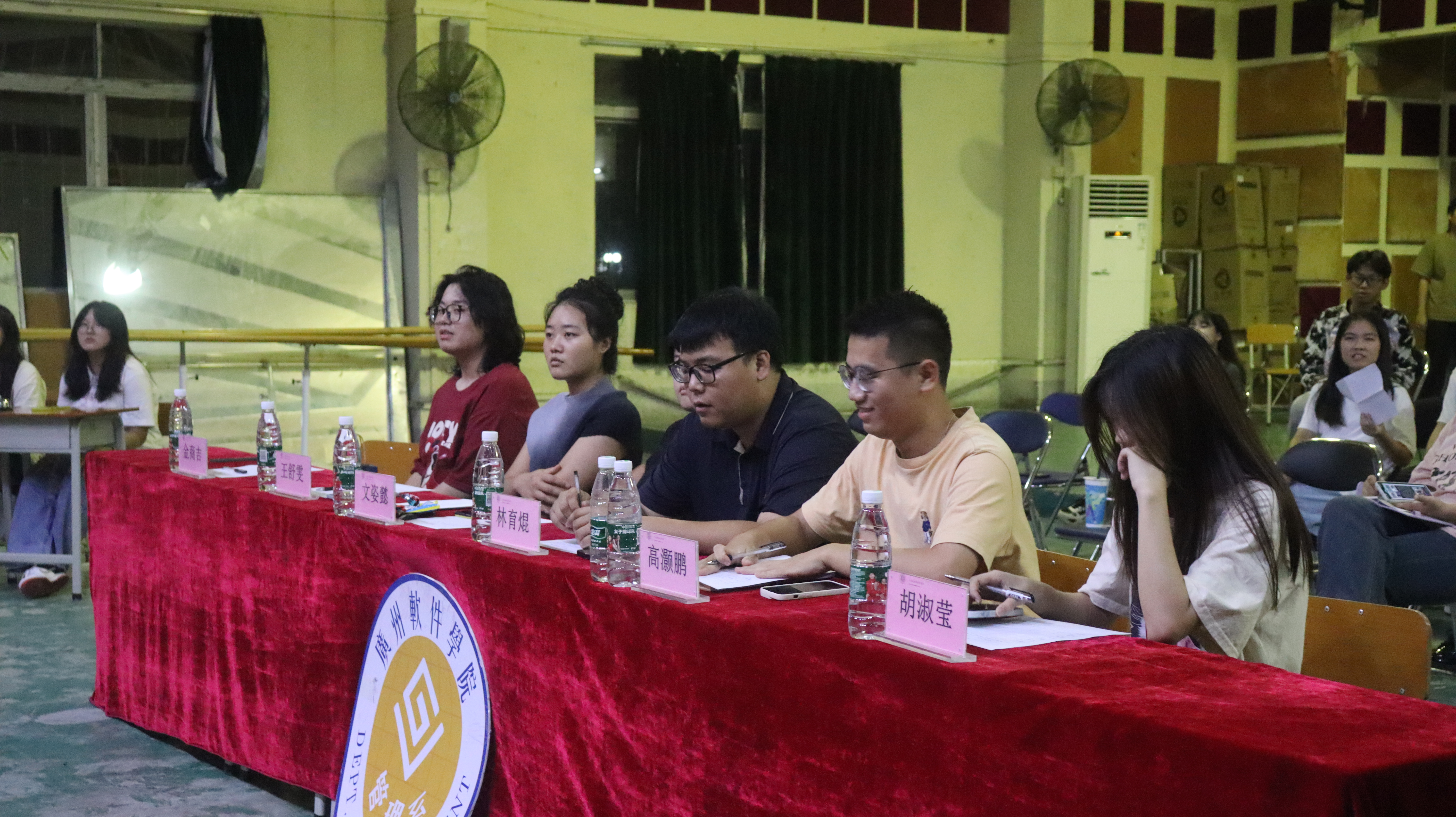 本网讯 2023年10月27日晚上19:00及10月31日下午14:00,由管理系团学文娱部主办的第十四届校园文化艺术节之戏剧之王初赛在活动中心正式拉开序幕。出席本次初赛的评委嘉宾有:管理系团委书记兼学工办主任林育焜老师、管理系团委副书记兼学生会秘书长文姿懿老师、管理系辅导员王舒雯老师、管理系辅导员兼宣传工作指导老师高灏鹏老师、管理系学生会主席团成员胡淑莹师姐、第十三届戏剧之王负责人金商吉师兄。