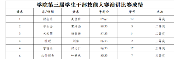 以下是干部技能大赛演讲比赛的优秀选手成绩: