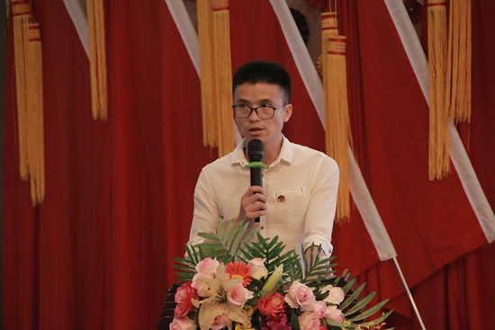 优秀学生代表陈依慧同学以自己的成长经历告诉同学们如何处理好学习、学生干部、社会实践这三者关系,并以“缘分”、“博爱”、“勇敢”、“开心”、“善良”、“珍惜”这五个词来告诫同学们珍惜大学生活,肩负起应有的责任,积极参与社会实践和投身于创新创业的工作上,无悔青春时光。
