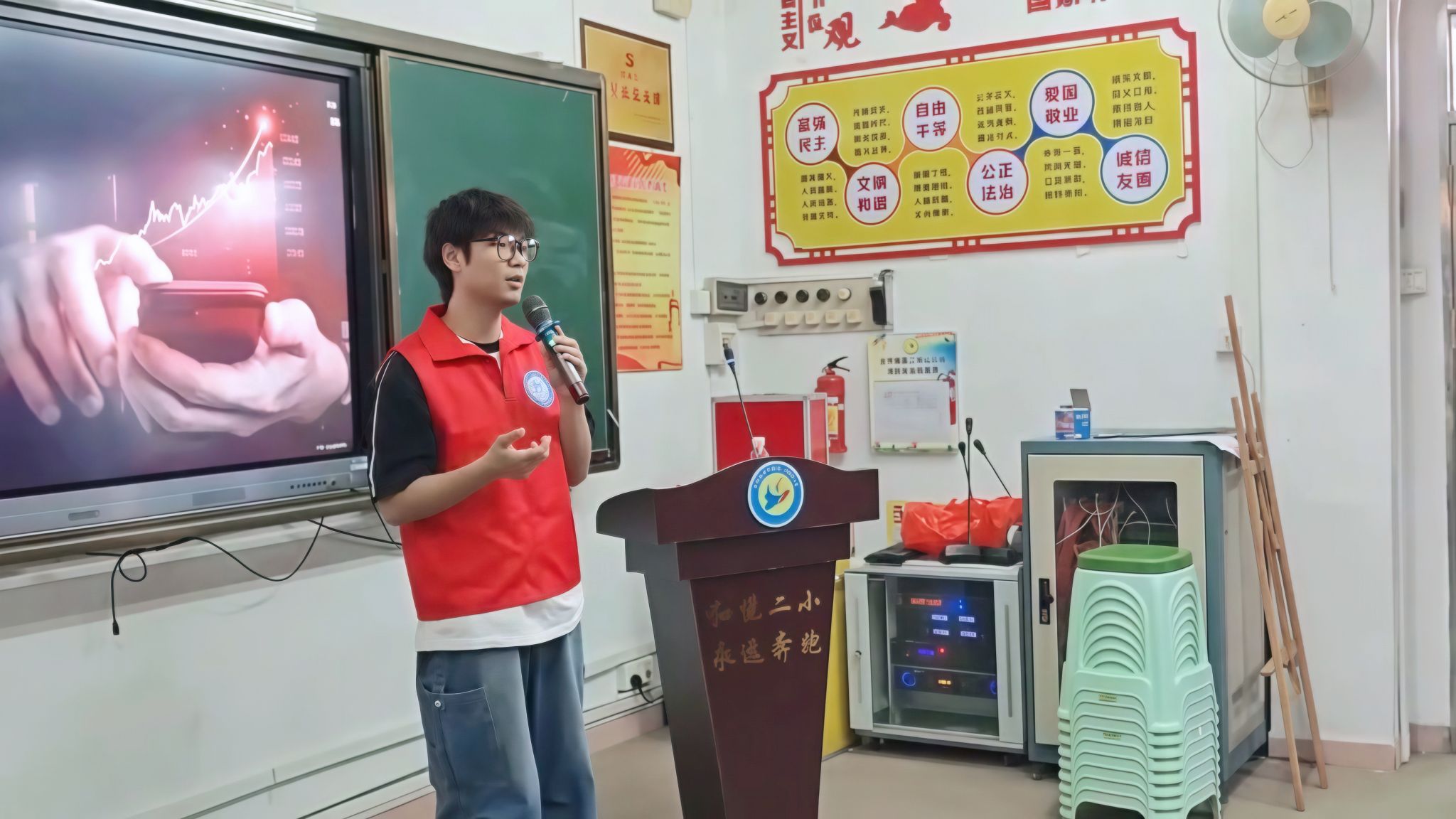 志愿服务队的队员们为学生们带来了一场生动的主持人理论课。课程围绕“主持人的基本素养”“语言表达技巧”“舞台礼仪”等内容展开,队员们结合视频和互动游戏,让学生们轻松掌握主持要点。