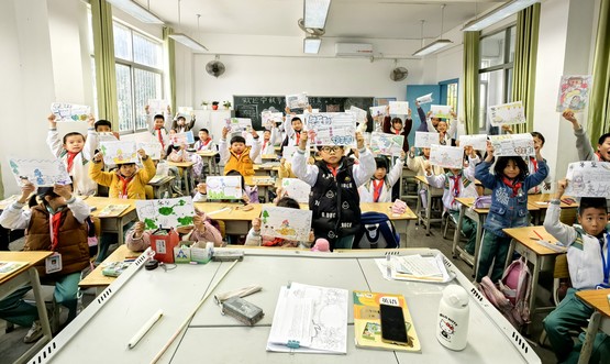 在浮岗小学的课堂上,支教老师向孩子们简单介绍了冬至,随后,孩子们在老师带领下齐唱有关冬至的歌谣,并进行冬至主题绘画与剪纸活动,一幅幅色彩斑斓的作品,展现出孩子们对传统节日的深入了解。