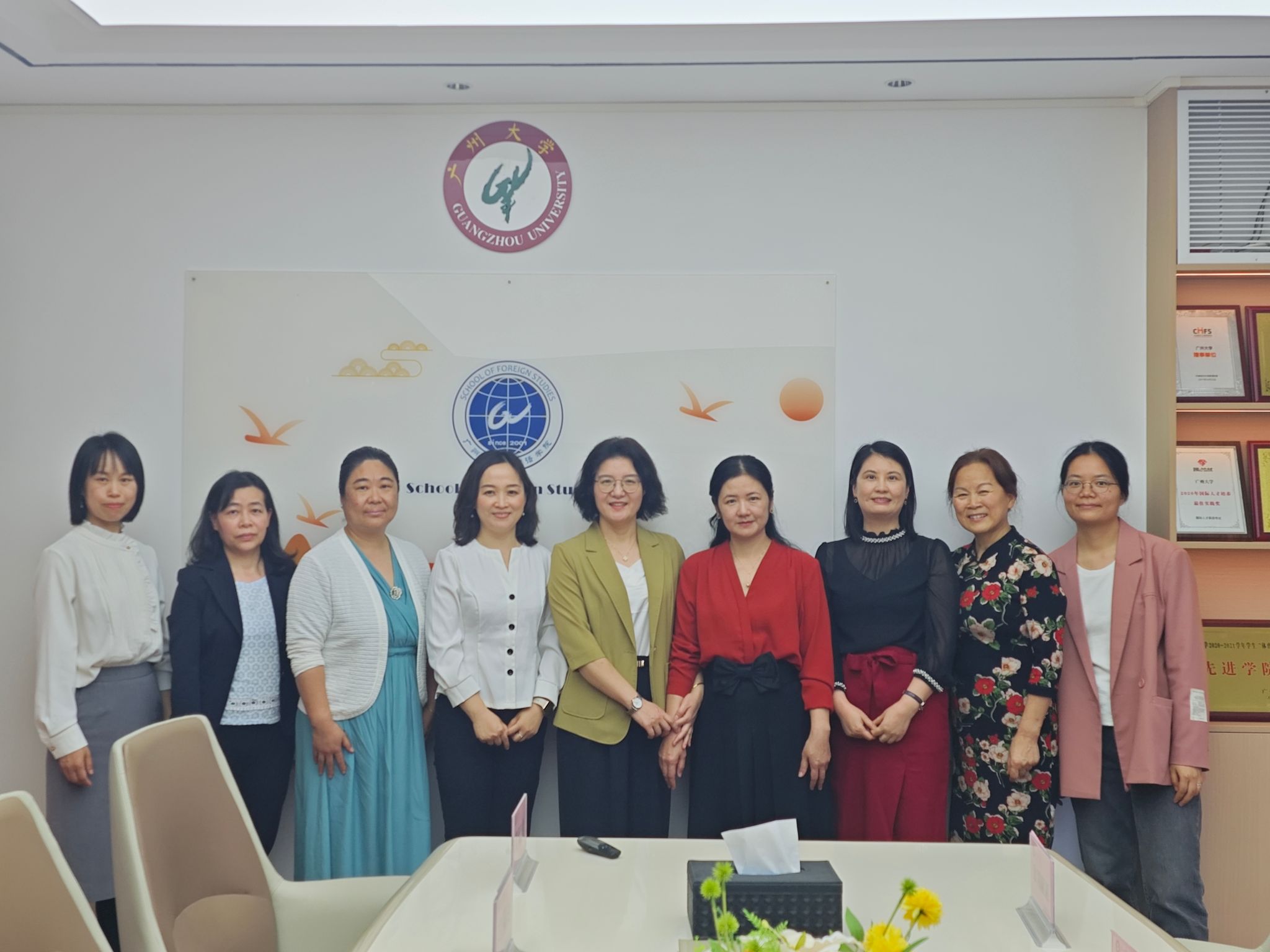 本网讯 2025年3月13日,在广州软件学院外国语学院梁洁院长带领下,一行7人就英语专业建设、人培方案修订、英语专业及大学英语课程建设与教改、教学质量保障举措等诸多方面前往广州大学外国语学院进行调研活动。