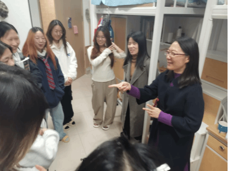 王丽娜老师,李竹丽老师跟学生在宿舍交流