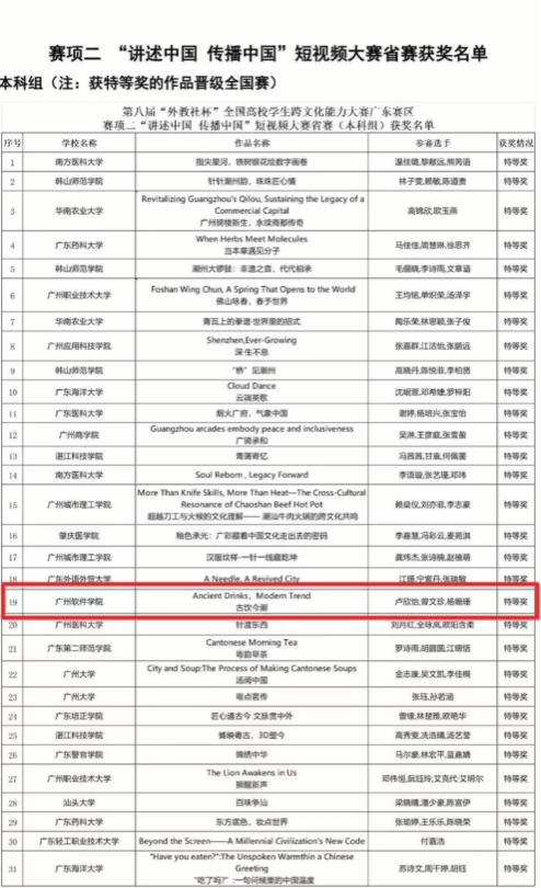 近日,第八届“外教社杯”全国高校学生跨文化能力大赛顺利收官。我校学子卢欣怡、曾文珍、杨姗珊的作品《古饮今潮: Ancient Drinks, Modern Trends》,一举斩获全国二等奖。