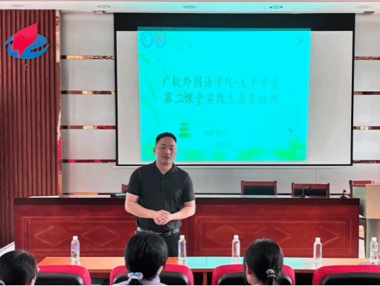 首先,两校举行了广软外国语学院与太平中学第二课堂实践志愿者培训暨启动仪式。在志愿者培训环节中,太平中学黄级长倾囊相授,为小老师们分享了自身丰富的教学经验,她特别强调,要通过积极互动和及时鼓励来调动学生积极性,从而有效提升他们的学习自信心。外国语学院党委张洪华书记对太平中学给予志愿者们一个实践平台和机会表示衷心的感谢,他指出,志愿者们要充分把握本次契机,将理论知识转化为教学能力,在实践中不断提升专业素养。