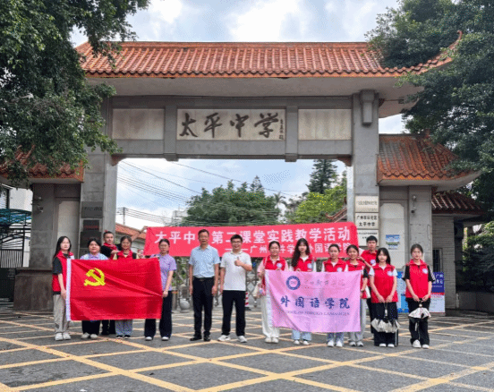 本网讯 风华正茂之际,磨砺提升启新程。为助力学生实现全方位发展,推动奉献意识成为生活常态,外国语学院立足专业特色,深挖专业潜能,携手太平中学,共同打造形式多元的第二课堂实践活动。5月20日,一支由中共预备党员、党员发展对象、入党积极分子和青年团员组成的志愿团队,在外国语学院党委书记张洪华老师、外国语学院学工办主任刘歆老师的带领下,前往太平中学开展第二课堂实践活动。