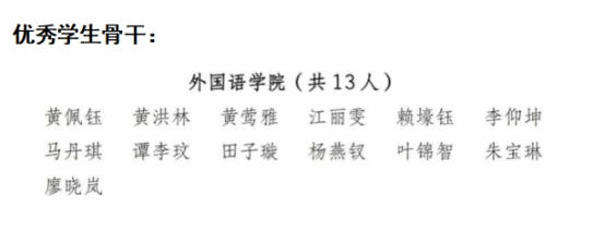 在本次表彰中,外国语学院2022级商务英语1班团支部和2022级日语班团支部荣获“五四红旗团支部”称号,林家欣和罗锐彬两位团支部书记荣获“优秀团支部书记”称号。