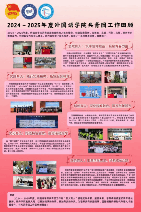 在此,让我们向所有获表彰的集体和个人表示热烈祝贺!外国语学院将以此次表彰为契机,持续深化基层团组织建设,充分发挥榜样引领作用,全面提升服务青年水平。期待外国语学院各级团组织和广大团员青年再接再厉,为学校共青团工作贡献更多青春力量!