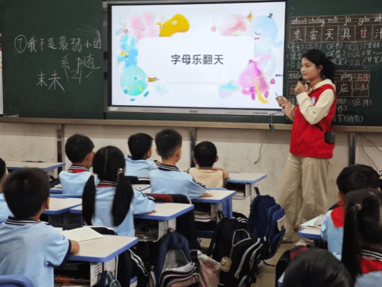本网讯 为落实实践育人理念,丰富英语启蒙教学形式,激发学生英语学习兴趣,夯实字母基础,外国语学院晨曦志愿服务队于3月17日走进太平二小,开展以“趣识字母·趣启英文”为主题的趣味英语课堂。后续队员们将持续开展一系列素质教育课程,于3月17日至6月9日的每周二下午分别开展小主持人课、趣味英语课与创意手工课,以多元素质教育培养学生们全面成长。