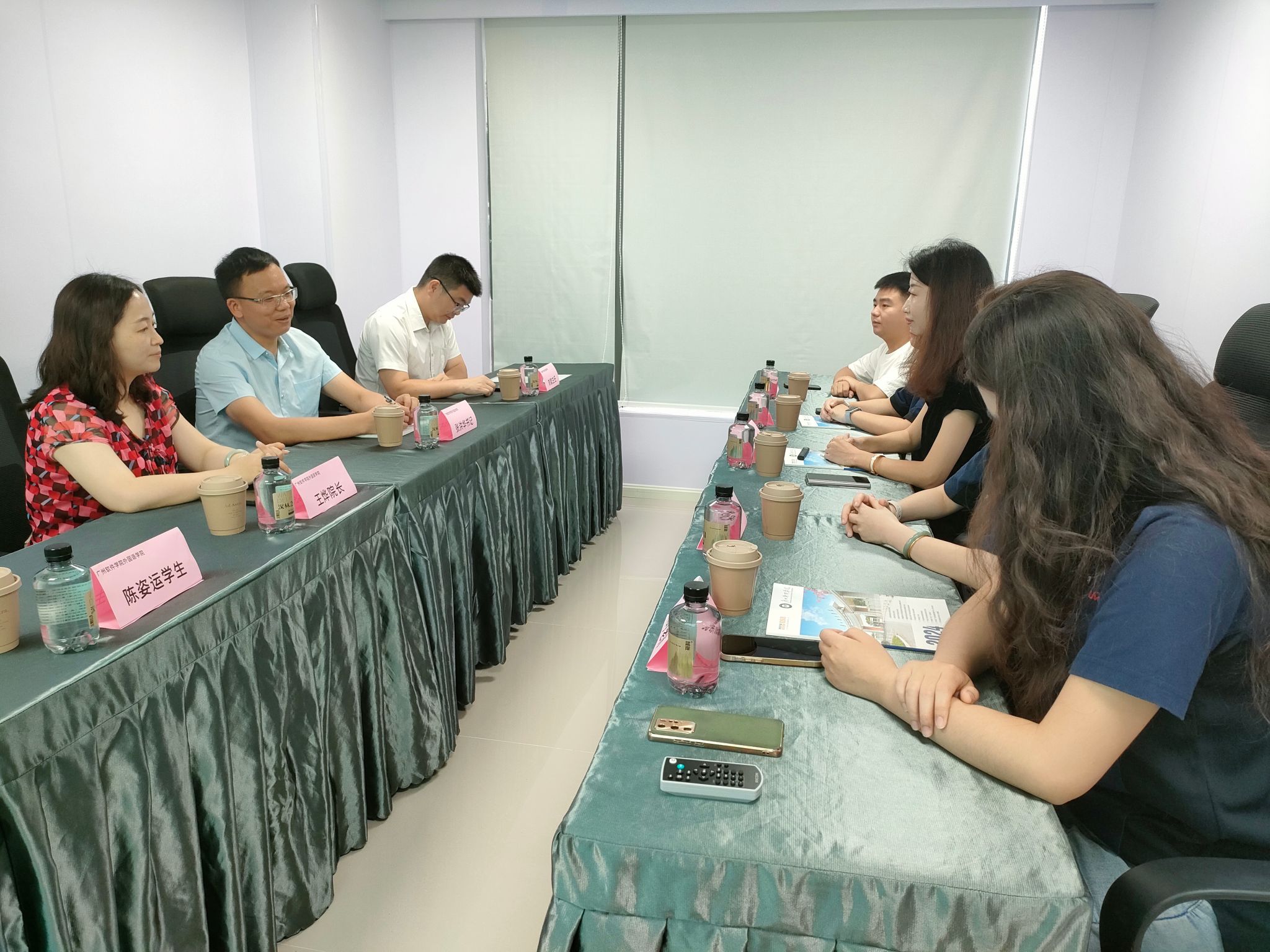 随后我院一行走访了校企合作单位深圳市优米教育咨询有限公司。孙璐校长和雷金龙经理等引导大家参观了新科技教室和荣誉陈列室,并简单介绍了公司理念和发展历程。会上,还组织主管教学的两位老师现场演示教材与授课平台、学员之间的交互,以及平台后台的大数据分析情况,对K-12英语教育教学考级考证等有一套非常成熟的体系,与会师生大开眼界。陈姿运同学参加了该公司组织的面试,并顺利通过。