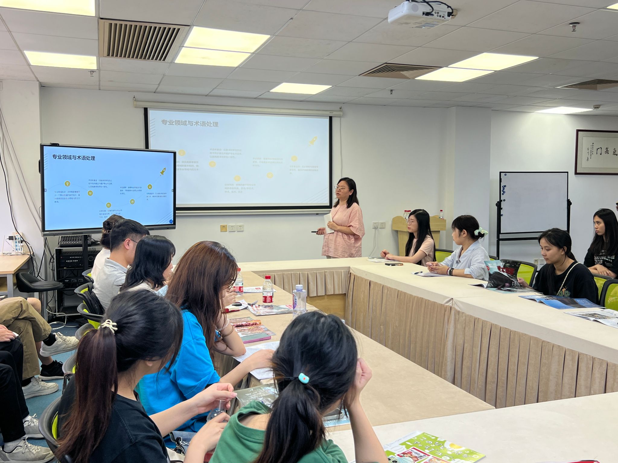 活动伊始,实践基地笔译部陈经理向师生们介绍了公司业务范围,行业优势以及联合国家外文局举办的各种面向学生的大型比赛,期待我们的学生积极参加。特别介绍了为学生设置的日本语能力考试刷题小程序,翻译大赛专家讲座等等。使学生们对语言服务行业有了更深入的了解。翻译专家安老师首先系统讲解了笔译工作的完整流程,从客户需求分析、术语库准备到翻译与审校环节,层层剖析专业译者的工作方法。随后,她结合典型行业案例解析了常见翻译难点的应对技巧,并简要介绍了主流翻译工具的操作应用,让学生们获得了第一手的行业实务经验。留学顾问李老师、外教永井老师则针对赴日留学与就业等问题进行了详细介绍,为学生未来的学业和职业规划提供了一定的参考。