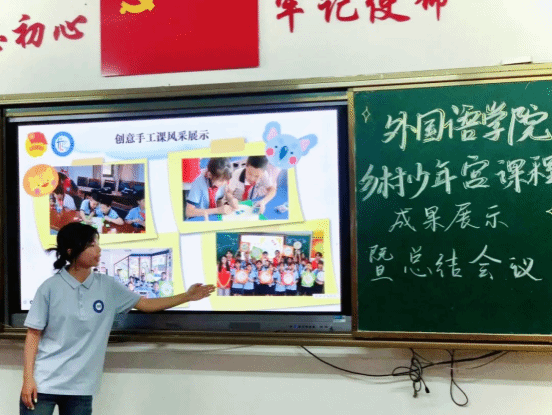 袁艺津同学作为带队志愿者对本学期的乡村少年宫课堂进行了全面总结。回顾了课程的开展情况和教学成果。同时,也对未来的合作提出了更多的期待和规划,希望能够进一步丰富课程内容,提高教学质量,为孩子们带来更多优质的教育资源。