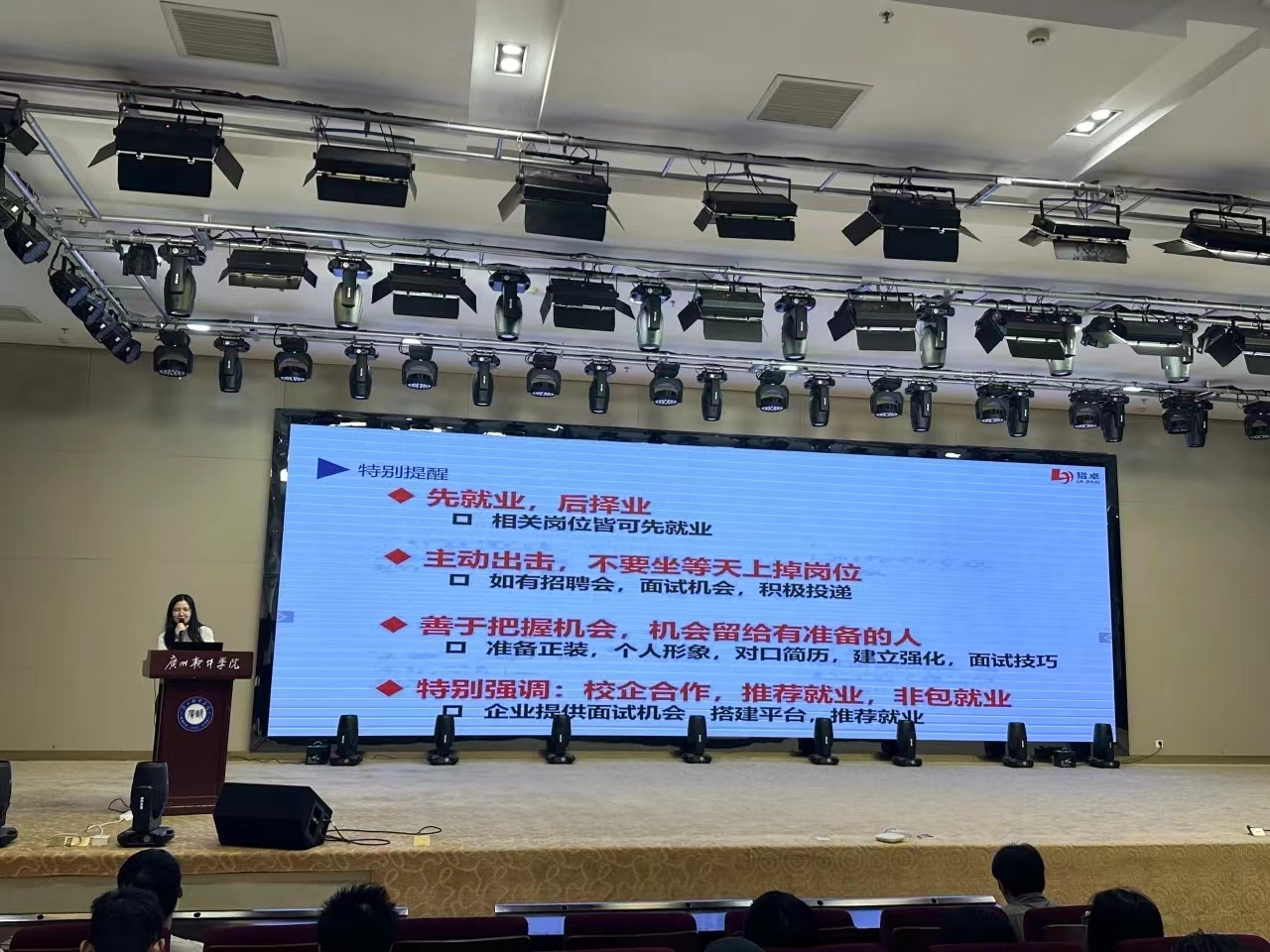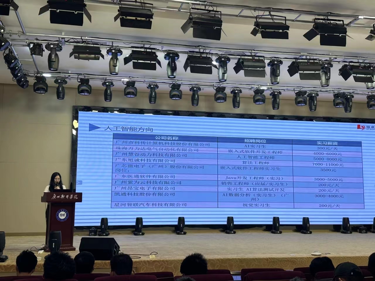 随后,钟美燕女士专门介绍了适合云计算专业学生的实习岗位,例如:信息安全工程师、AI实习生、嵌入式软件开发工程师、人工智能工程师、算法工程师等。方便大家定位和选择。