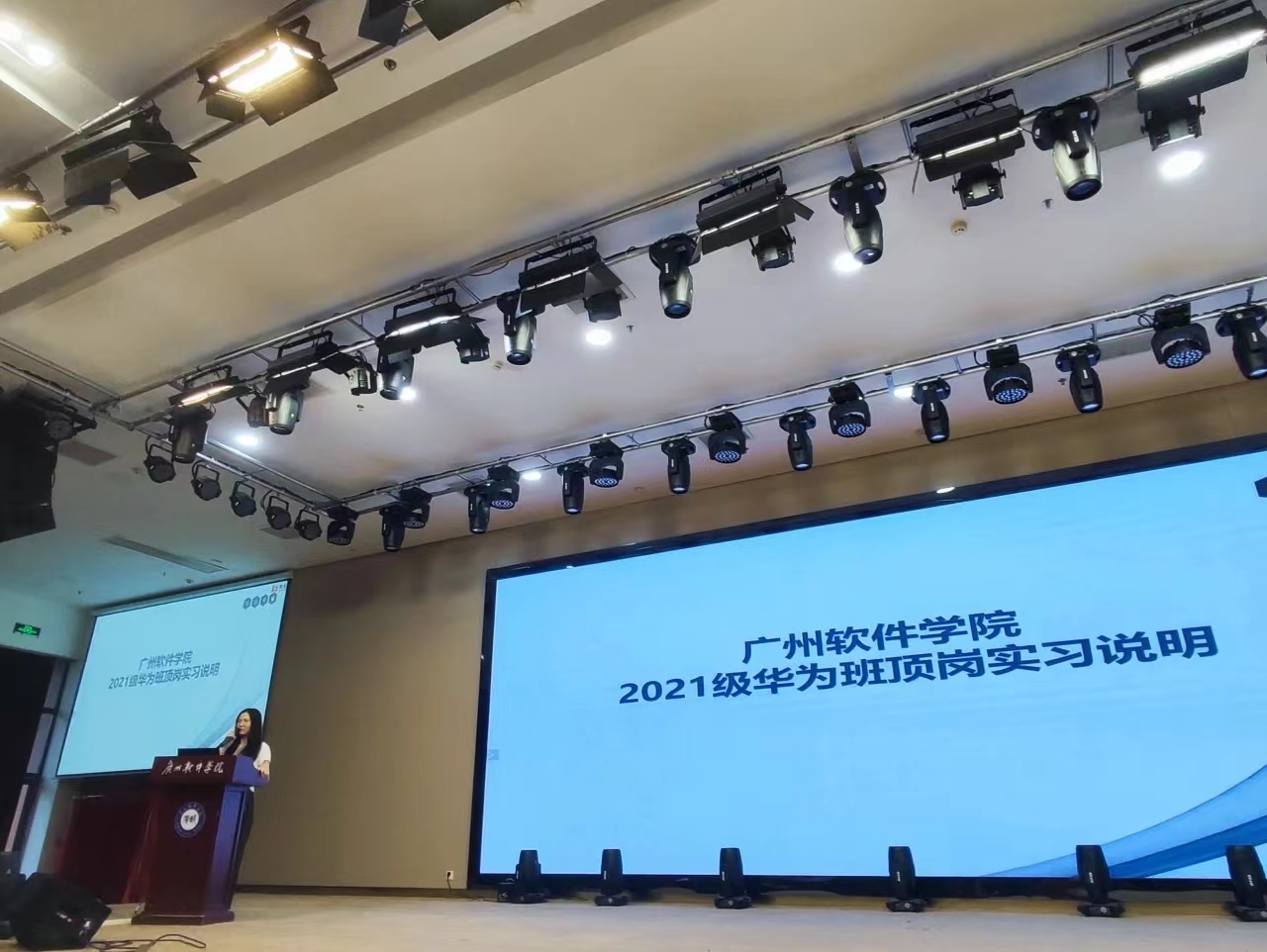本网讯 2024年6月14日下午15:00网络技术系在学术报告厅为2021级云计算创新实验班学生召开了顶岗实习动员大会。本次会议由广州腾科网络技术有限公司代表钟美燕女士和杨俊先生为同学们讲解。出席本次会议的嘉宾有广州腾科网络技术有限公司代表钟美燕女士、杨俊先生和林桂苹女士,网络技术系团委副书记兼学生会秘书长邝晓彤以及2021级云计算创新实验班全体成员。