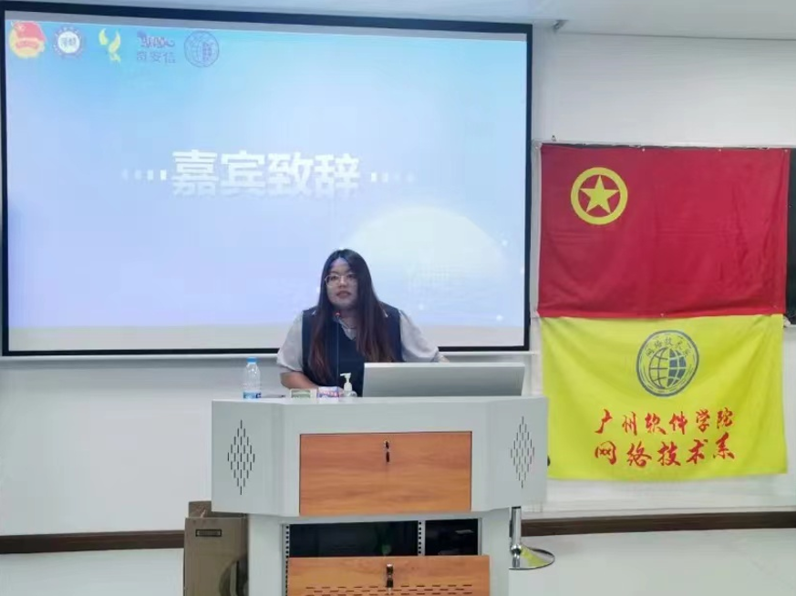 比赛开始前,由网络技术系团委副书记兼学生会秘书长邝晓彤老师为本次比赛致辞,邝晓彤老师对各位晋级的选手表示热烈的祝贺,提到本次比赛有利于提高同学们的学术底蕴并对本次大赛寄予厚望,希望各位选手们都能有良好的发挥。