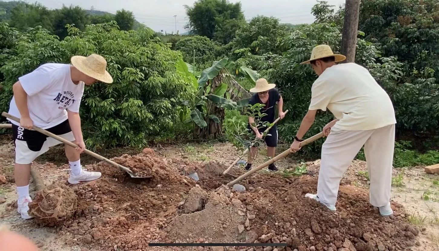 本网讯 |为深入学习贯彻习近平生态文明思想,推进绿美广东生态建设,积极响应“百千万工程”的号召,争做绿美生态建设的宣传者、实践者、推动者,推进“绿美广东·青年先行”广东青少年绿美志愿行动。5月16日下午,网络技术系学生党支部、网络技术系团委学生会、广州市启萌志愿服务中心和太平镇黄溪村委等15余名志愿者,在从化区太平镇黄溪村开展“绿美广东·青年先行”植树活动。