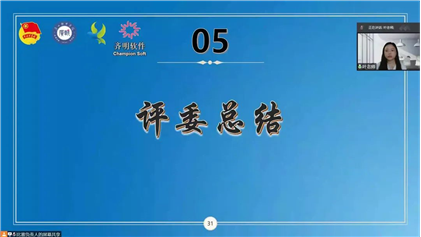 本网讯 网络技术系于4月12日15:00在腾讯会议平台举行广州软件学院第二十届科技学术节之齐明软件信息系统设计大赛决赛。出席决赛的评委及嘉宾有广州市齐明软件科技有限公司市场部陶倩楠经理,网络技术系李毓丽副主任,网络技术系主任助理叶小艳副教授,网络技术系王健副教授,网络技术系徐文超老师、耿晓利老师,网络技术系团委副书记兼学生会秘书长邝晓彤老师。