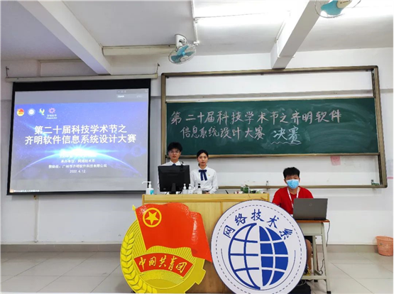 本网讯 网络技术系于4月12日15:00在腾讯会议平台举行广州软件学院第二十届科技学术节之齐明软件信息系统设计大赛决赛。出席决赛的评委及嘉宾有广州市齐明软件科技有限公司市场部陶倩楠经理,网络技术系李毓丽副主任,网络技术系主任助理叶小艳副教授,网络技术系王健副教授,网络技术系徐文超老师、耿晓利老师,网络技术系团委副书记兼学生会秘书长邝晓彤老师。