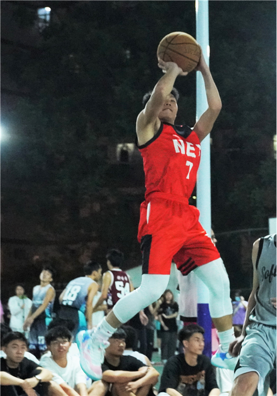 随着哨声一响,比赛正式开始,现场气氛急剧攀升,双方队员活力高涨,你争我夺,展开了一轮轮的进攻防守。我系队员们精准的投篮技术与默契的配合,使我系在上半场领先于软件系。