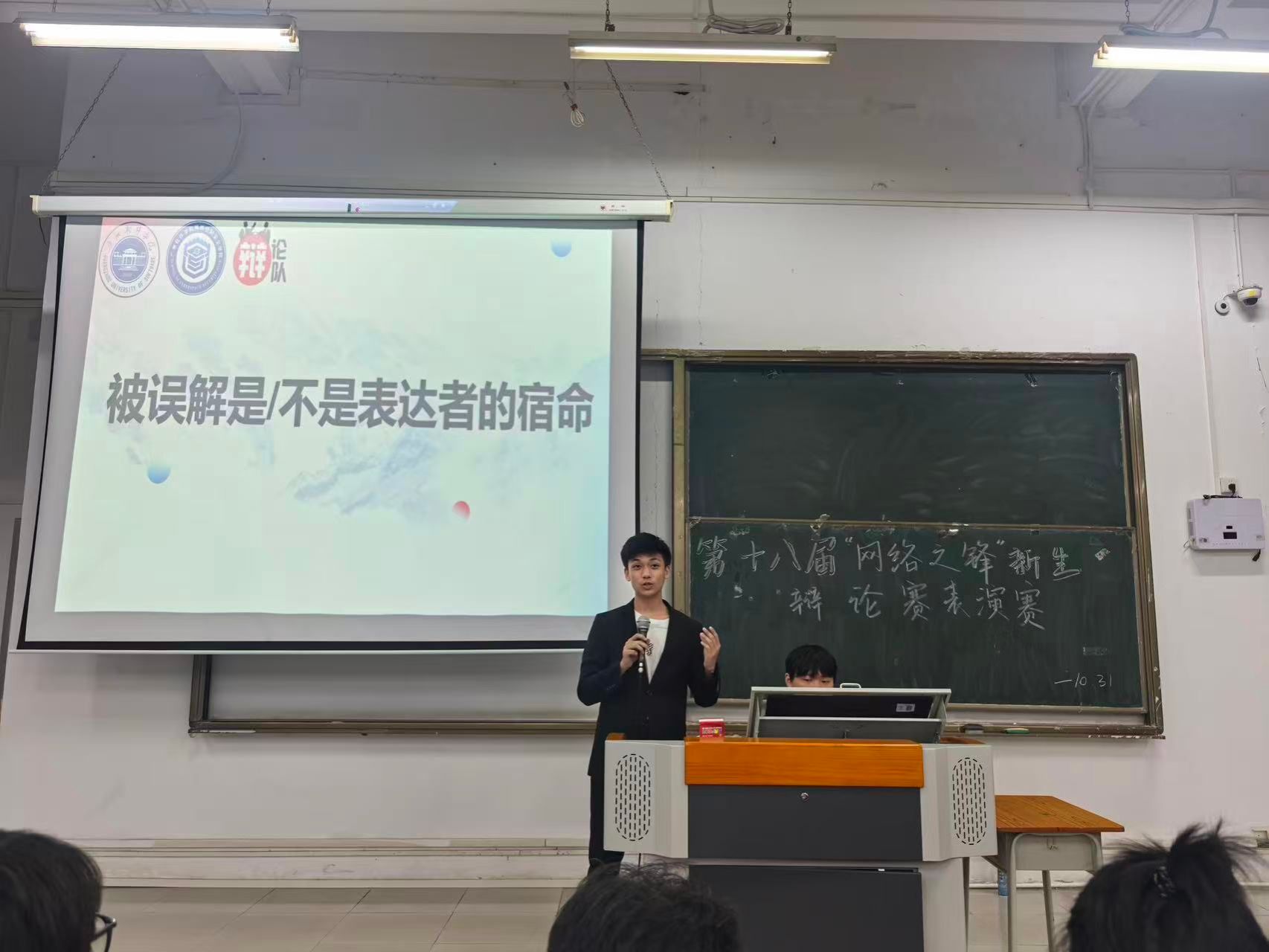 本网讯 为激发同学们的思维发散,体会思维火花的碰撞与激荡,感受辩论魅力,2025年10月31日,我院辩论队于E101举办了“网络之锋”辩论表演赛暨25级新生辩论赛动员大会。