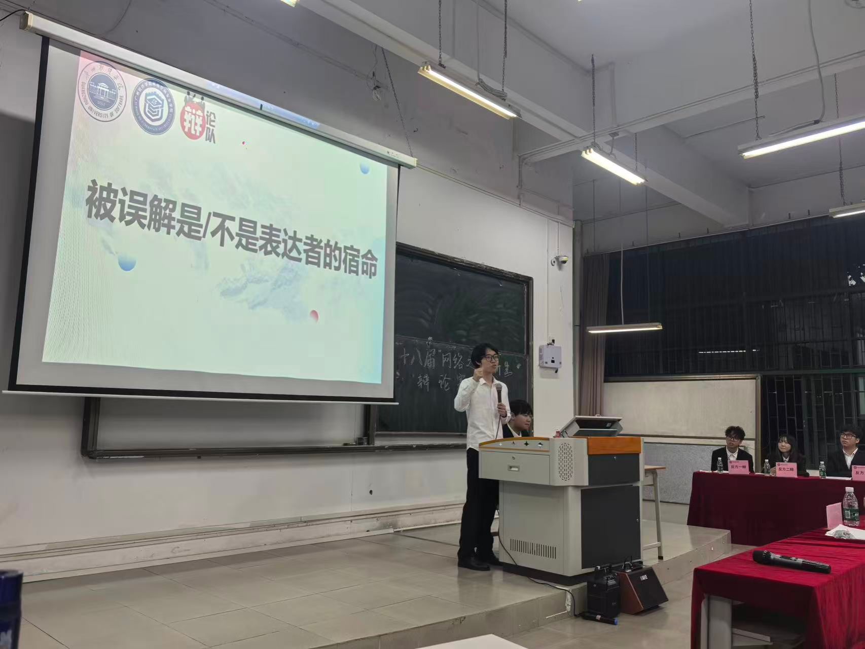 本次辩论表演赛的辩题为“被误解是/不是表达者的宿命”,双方辩手围绕着该辩题展开深度交锋。一方以清晰逻辑展开论述,另一方则迅速抓住对方论点中的不足,借助丰富实例予以反驳。辩手们灵活应变,言辞激烈交锋,充分展现了出色的思辨能力与表达功底,使得现场氛围持续升温,赢得观众认可。