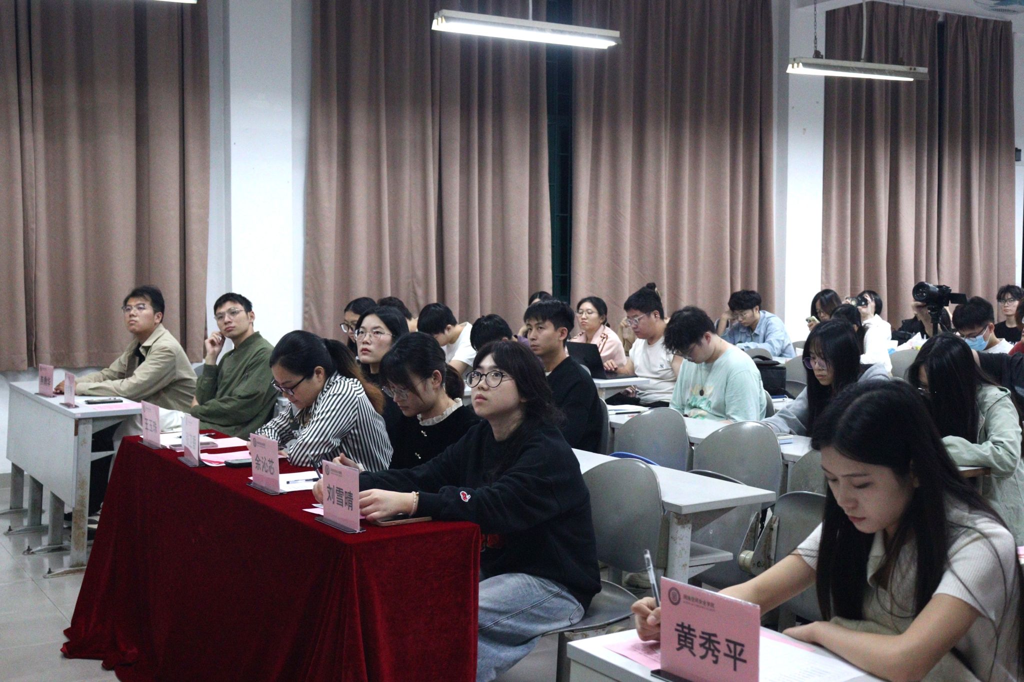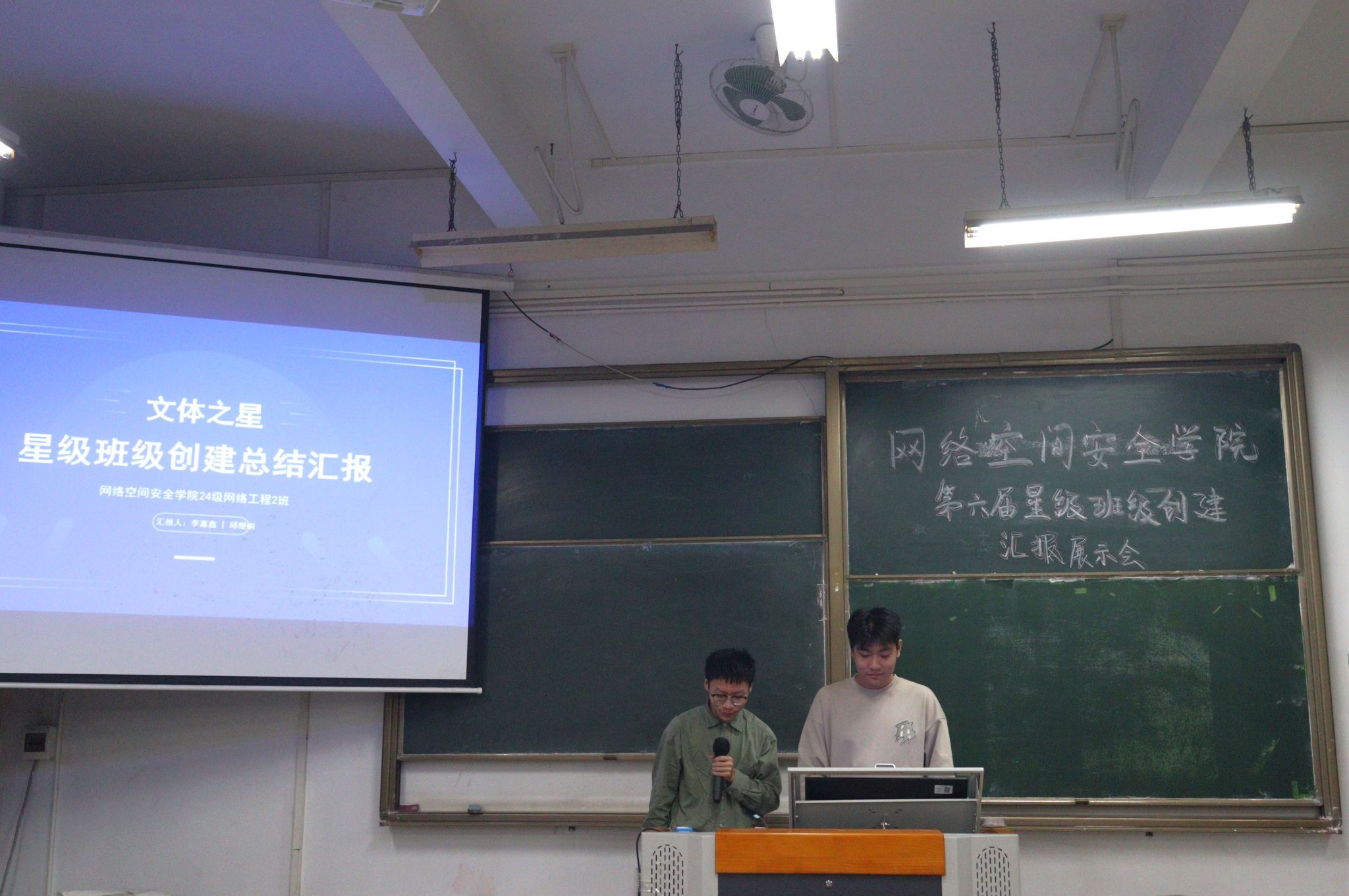 创建班级汇报展示初评与材料审核环节过后,9个班级脱颖而出晋级最终评比。现场,参评班级依次亮相,聚焦星级班级创建要求,全方位呈现组织建设、成果亮点、经验总结与未来规划。展示内容精炼有力,既彰显出色的策划创新能力,又传递出积极向上的班级氛围与强大向心力。
