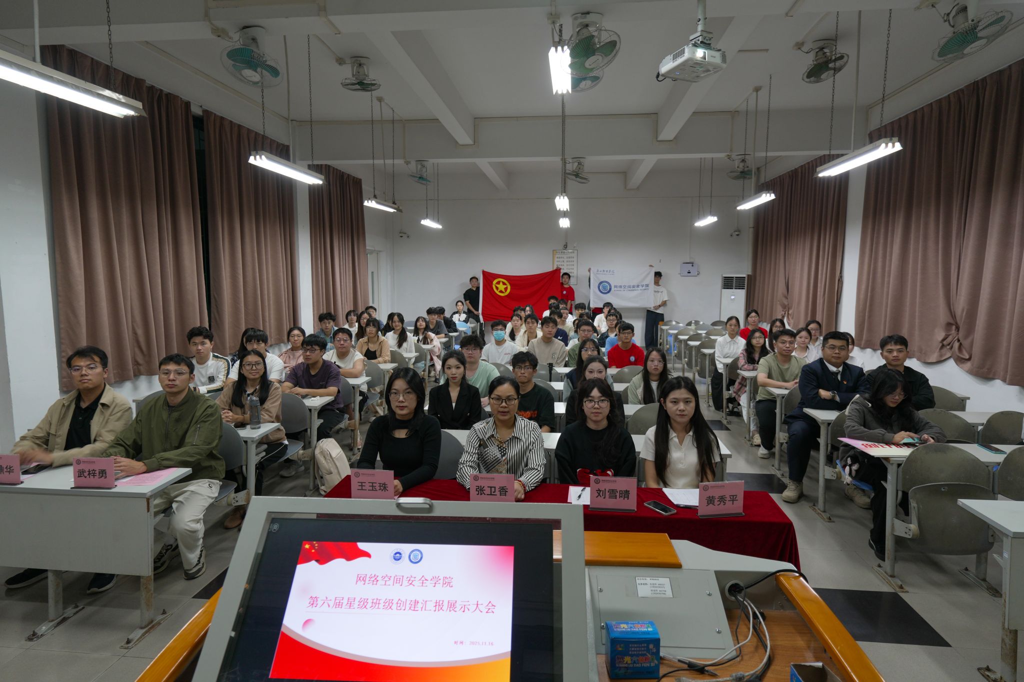此次星级班级汇报展示大会圆满收官,既是各班级风采绽放、经验共享的精彩舞台,更是激发集体向心力、凝聚发展合力的有力契机。展望未来,网络空间安全学院各班级将持续夯实班级建设根基,凝心聚力、砥砺前行,共绘学院发展新蓝图!