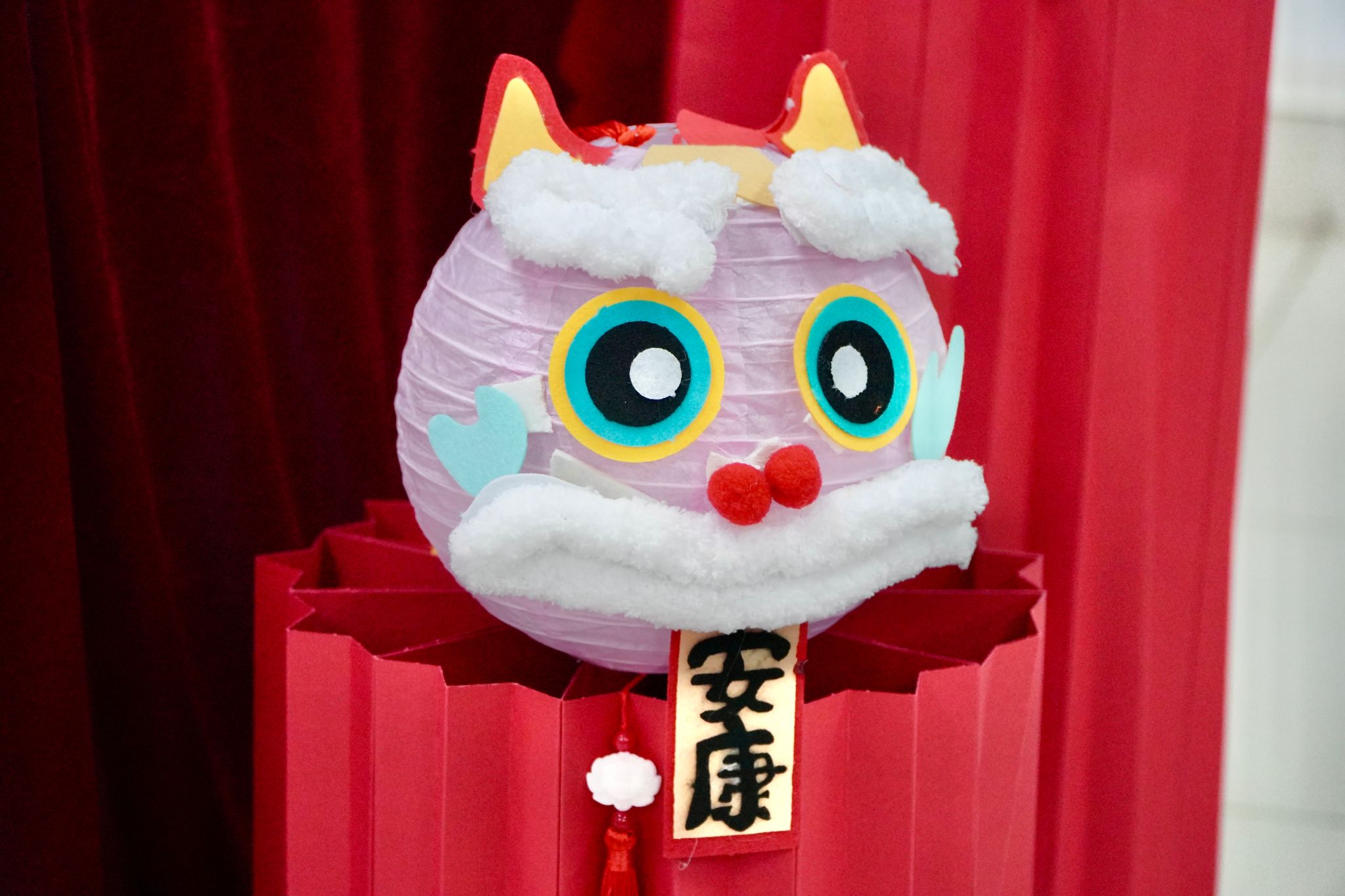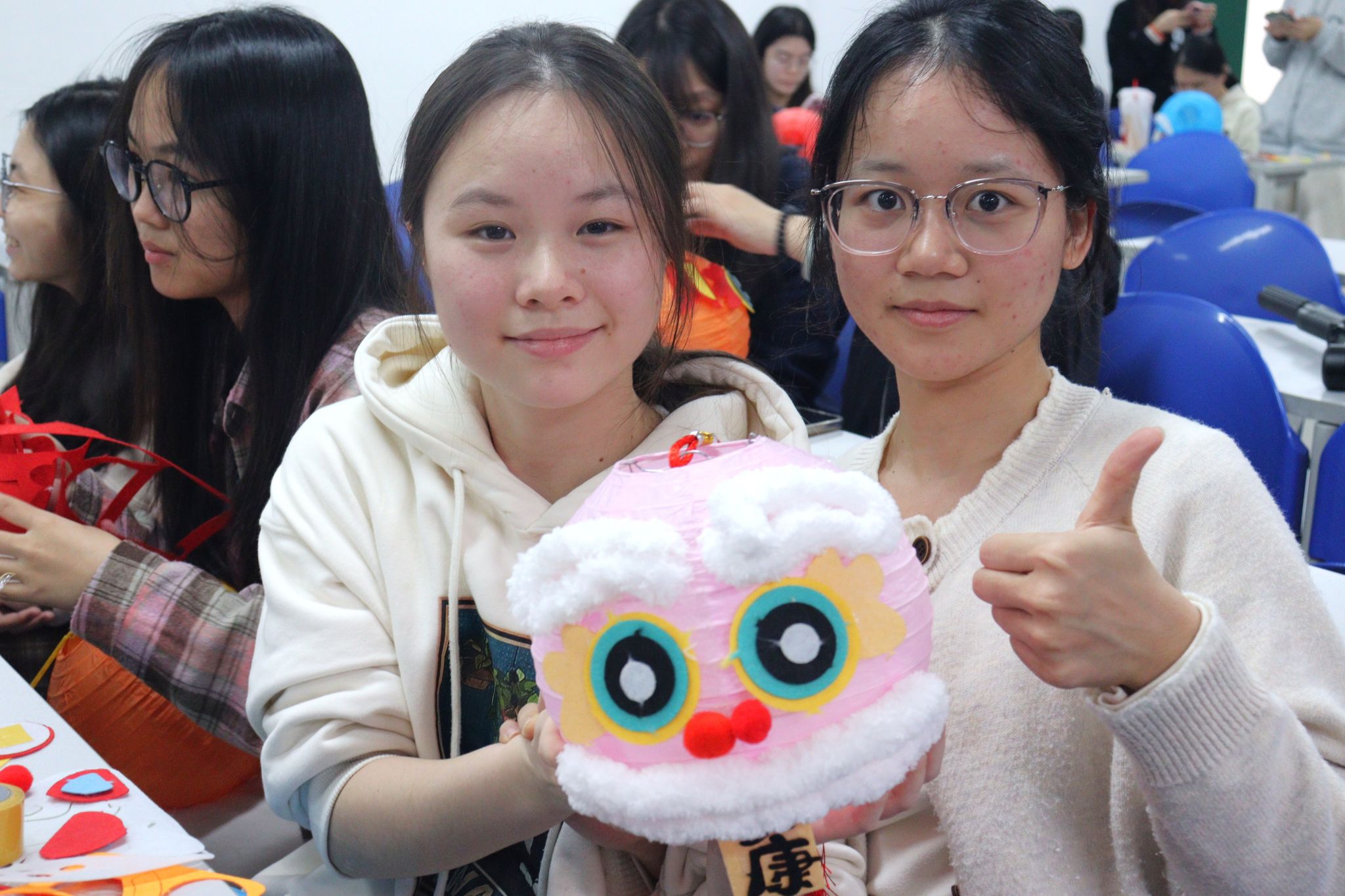 制作完成后,同学们带着自己做的醒狮灯笼进行合照。